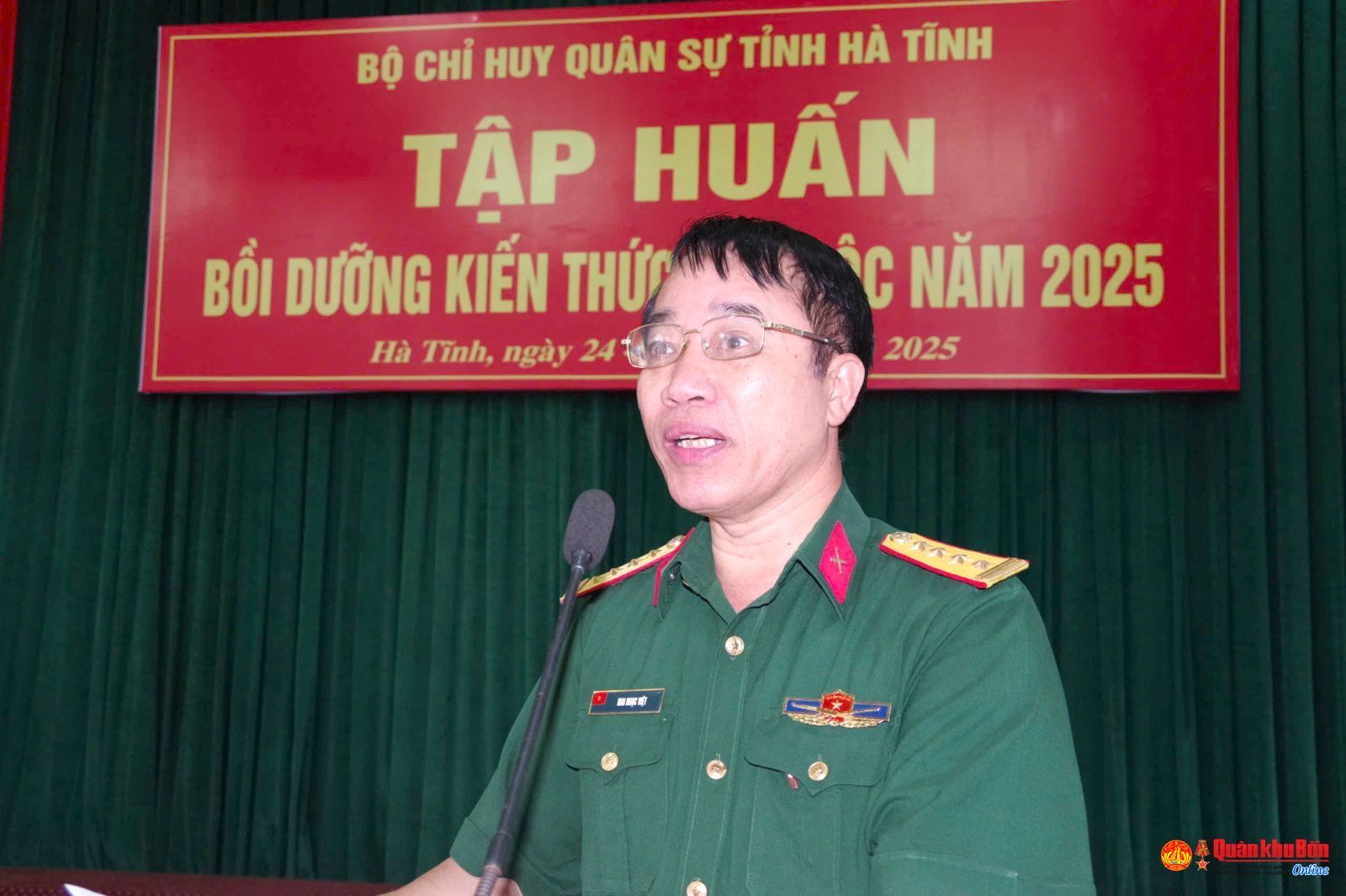 Từ ngày 24 đến 27/9/2025, Bộ Chỉ huy Quân sự tỉnh Hà Tĩnh tổ chức lớp tập huấn bồi dưỡng kiến thức dân tộc cho đội ngũ cán bộ trong lực lượng vũ trang tỉnh.