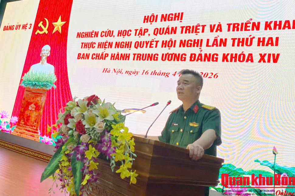 Ngày 16/04/2026, Đảng ủy Hệ 3, Học viện Chính trị đã tổ chức Hội nghị nghiên cứu, học tập, quán triệt, triển khai thực hiện Nghị quyết Hội nghị lần thứ hai, Ban Chấp hành Trung ương Đảng khóa XIV cho toàn thể cán bộ, đảng viên, nhân viên, học viên trong Hệ. Đồng chí Thượng tá Nguyễn Bá Thưởng, Bí thư Đảng ủy, Chính trị viên Hệ chủ trì Hội nghị.