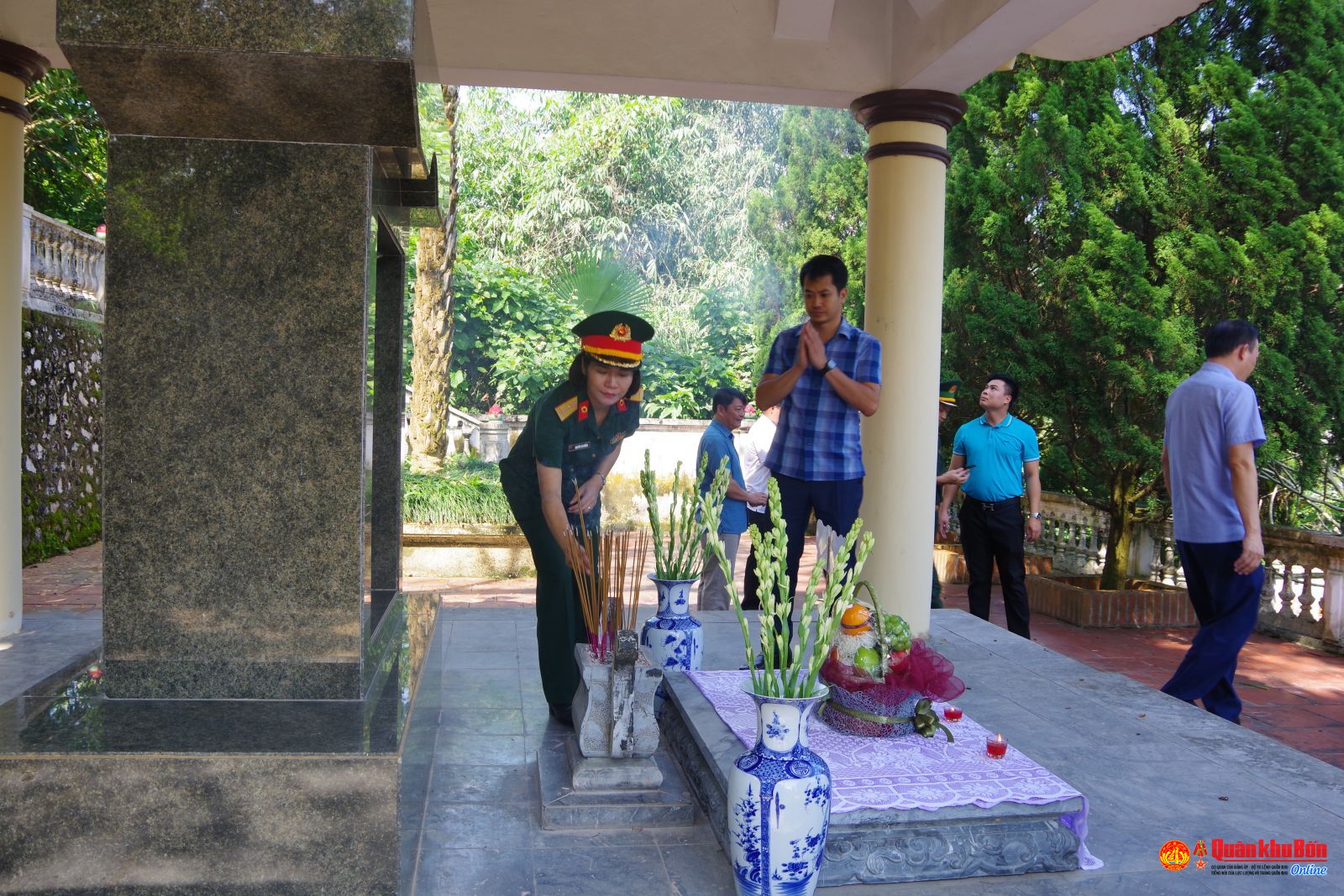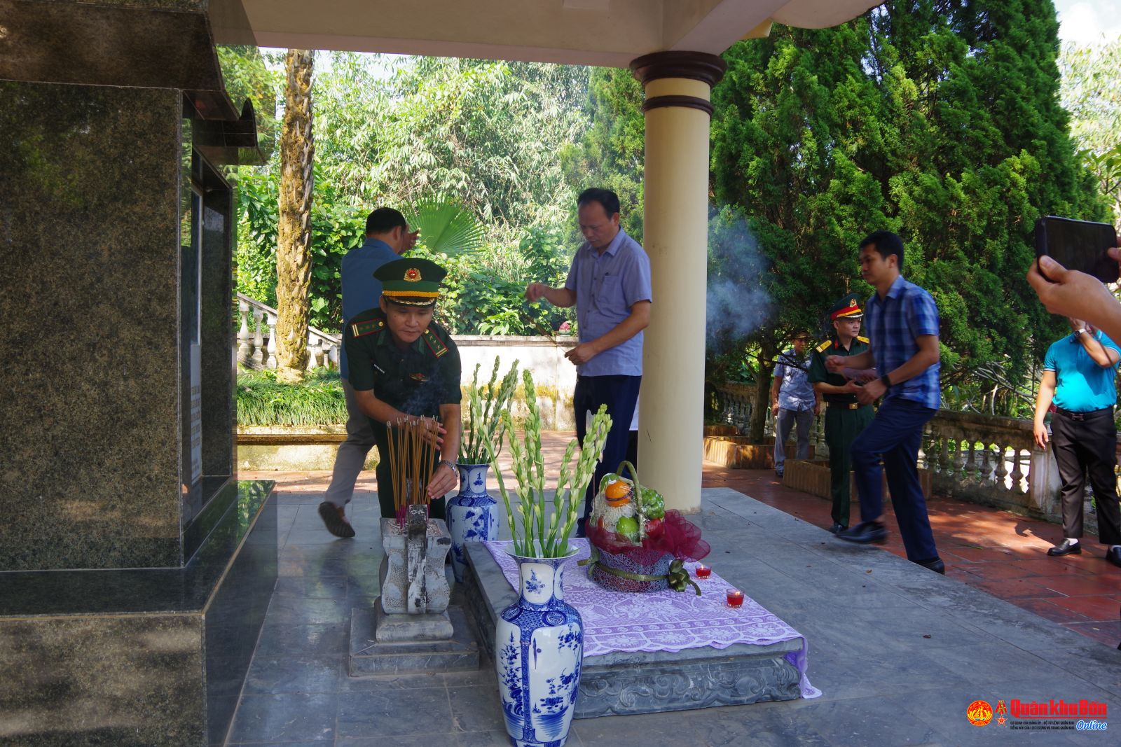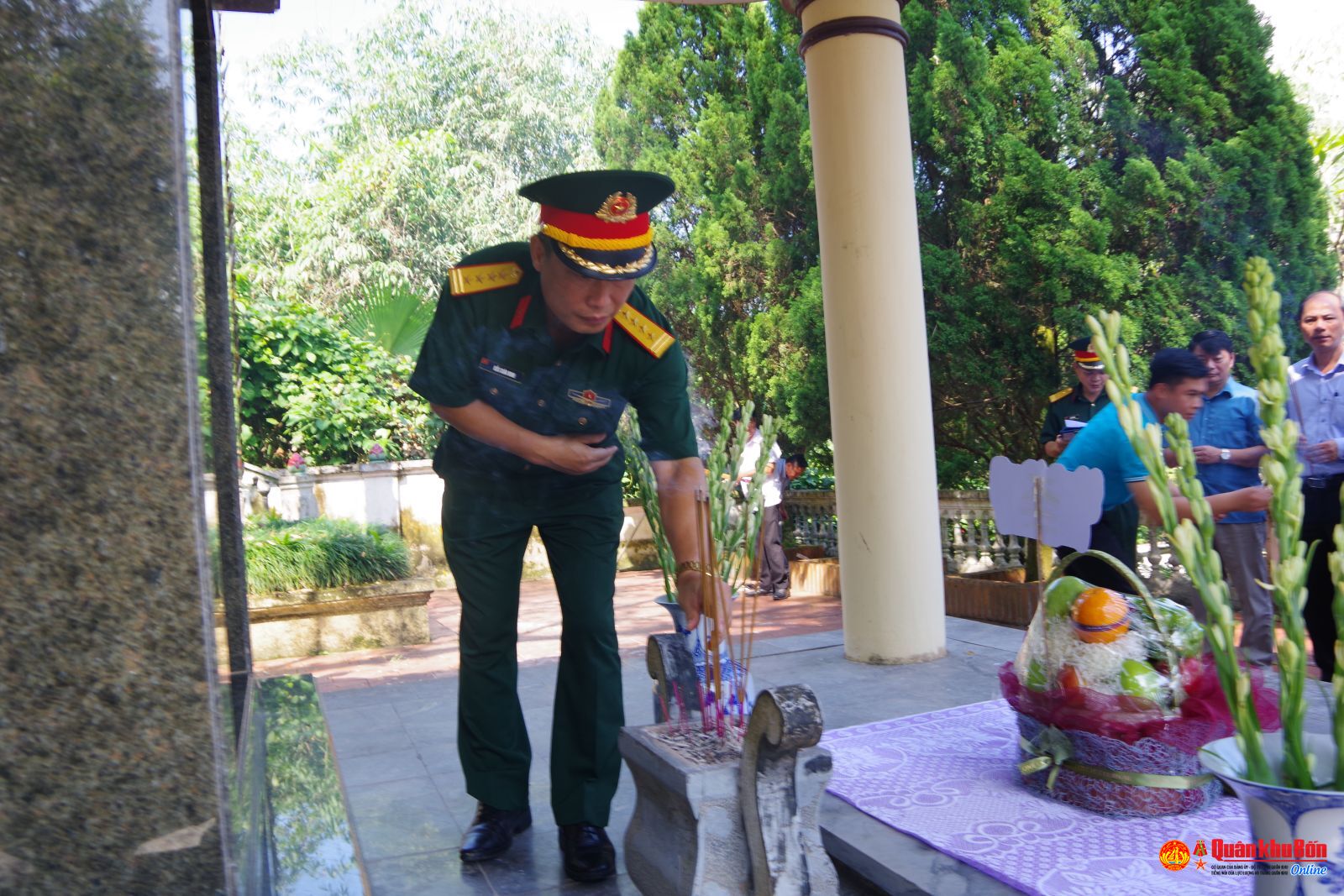 Tại Đồi Phong tướng, đoàn công tác đã kính cẩn nghiêng mình tưởng niệm, bày tỏ lòng biết ơn sâu sắc đối với những người con ưu tú vì độc lập, tự do của Tổ quốc.