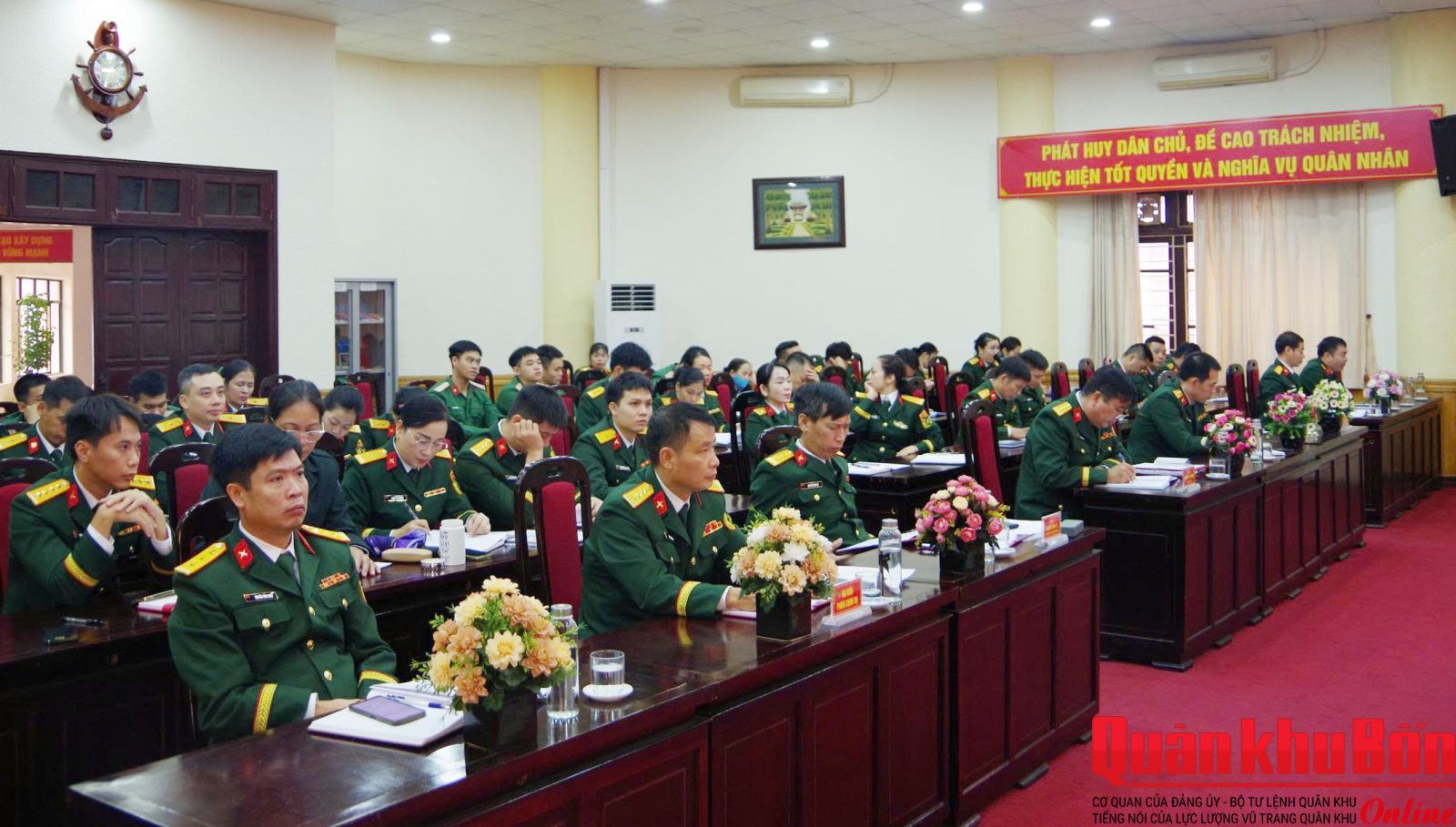 Tại Đại hội, các đại biểu đã nghe báo cáo kết quả thực hiện Quy chế dân chủ ở cơ sở nhiệm kỳ 2023 - 2025. Báo cáo khẳng định: Dưới sự lãnh đạo, chỉ đạo của Đảng ủy, Chỉ huy Văn phòng, Hội đồng quân nhân và tập thể quân nhân đã phát huy tốt quyền làm chủ trên các lĩnh vực quân sự, chính trị, chuyên môn, kinh tế và đời sống; duy trì nền nếp, chế độ sinh hoạt dân chủ; nắm chắc nhiệm vụ chính trị trung tâm, tích cực tham mưu, đề xuất nhiều nội dung thiết thực, góp phần hoàn thành tốt chức năng tham mưu, tổng hợp, hành chính, quân sự, pháp chế, công nghệ thông tin, đối ngoại quốc phòng và phục vụ.