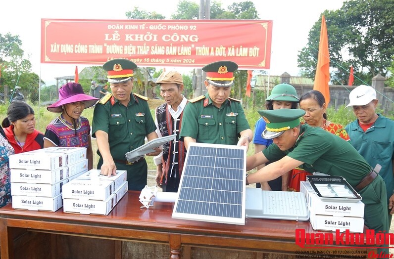 Song hành với phát triển sản xuất, Đoàn Kinh tế - Quốc phòng 92 còn phối hợp với địa phương triển khai nhiều công trình, phần việc thiết thực: làm đường giao thông, kênh mương nội đồng, xây dựng trường học, trạm y tế… Các mô hình như “Đưa nước sạch về với dân bản”, “Ánh sáng đường biên”, “Tuyến đường quân dân kiểu mẫu”, “Cơ quan, đơn vị kết nghĩa hộ nghèo”, hay các chương trình “Xuân đoàn kết, Tết thắm tình quân dân”… đã góp phần cải thiện rõ rệt đời sống người dân.
