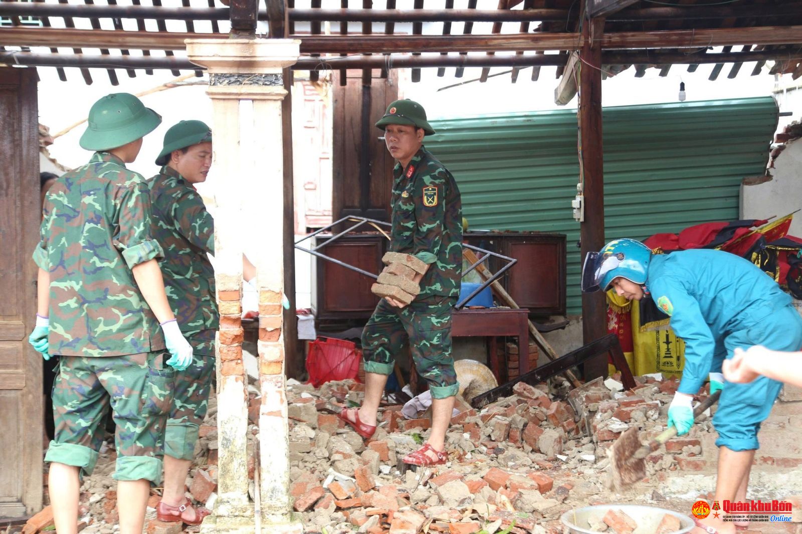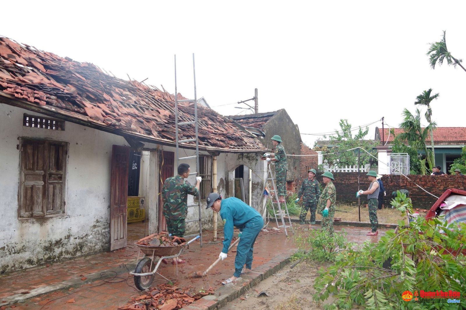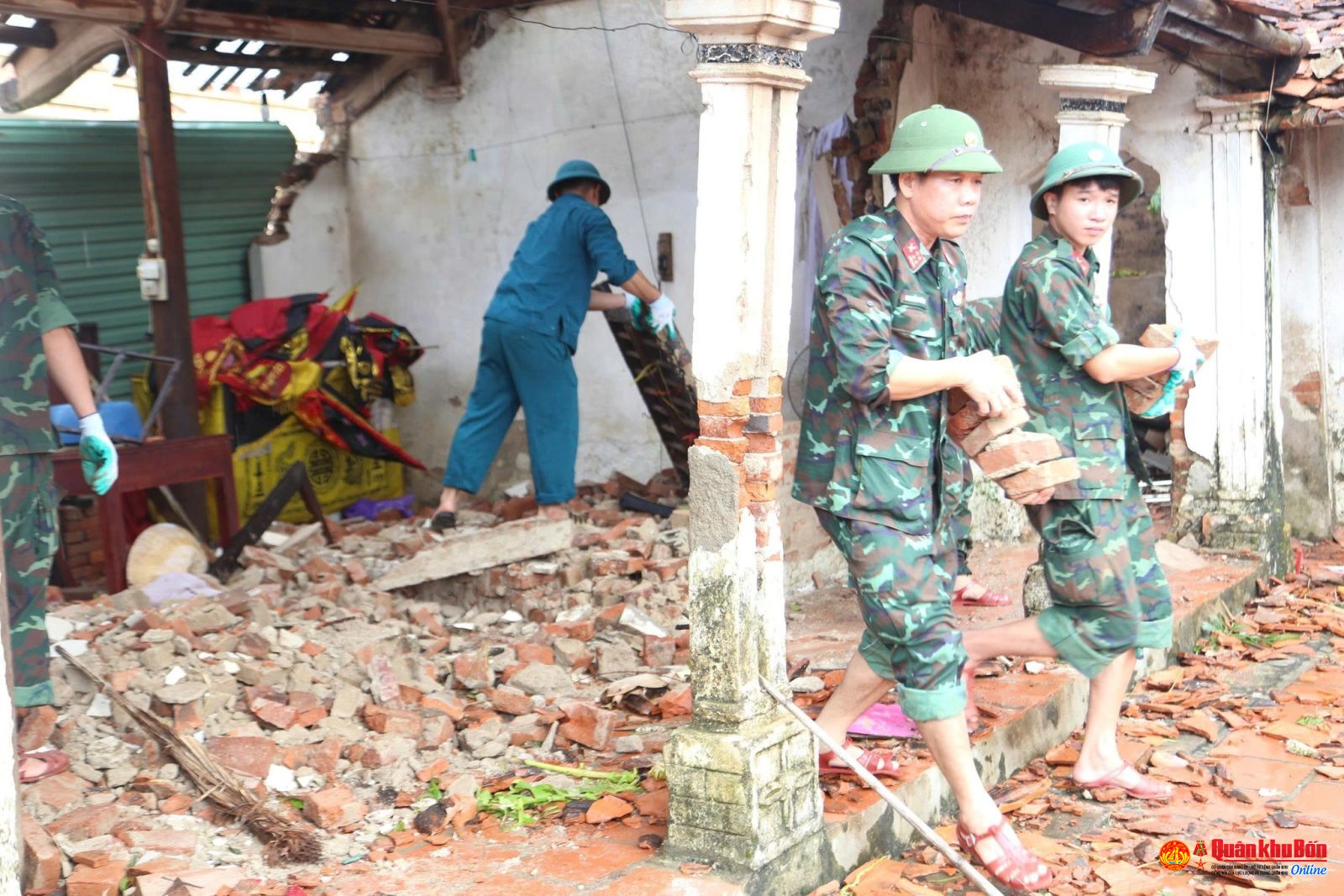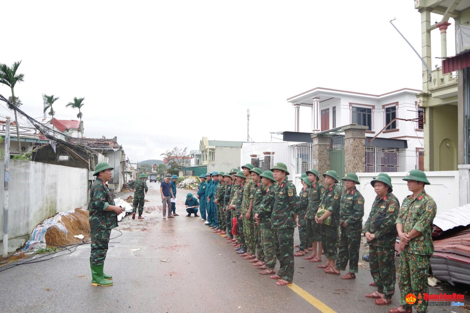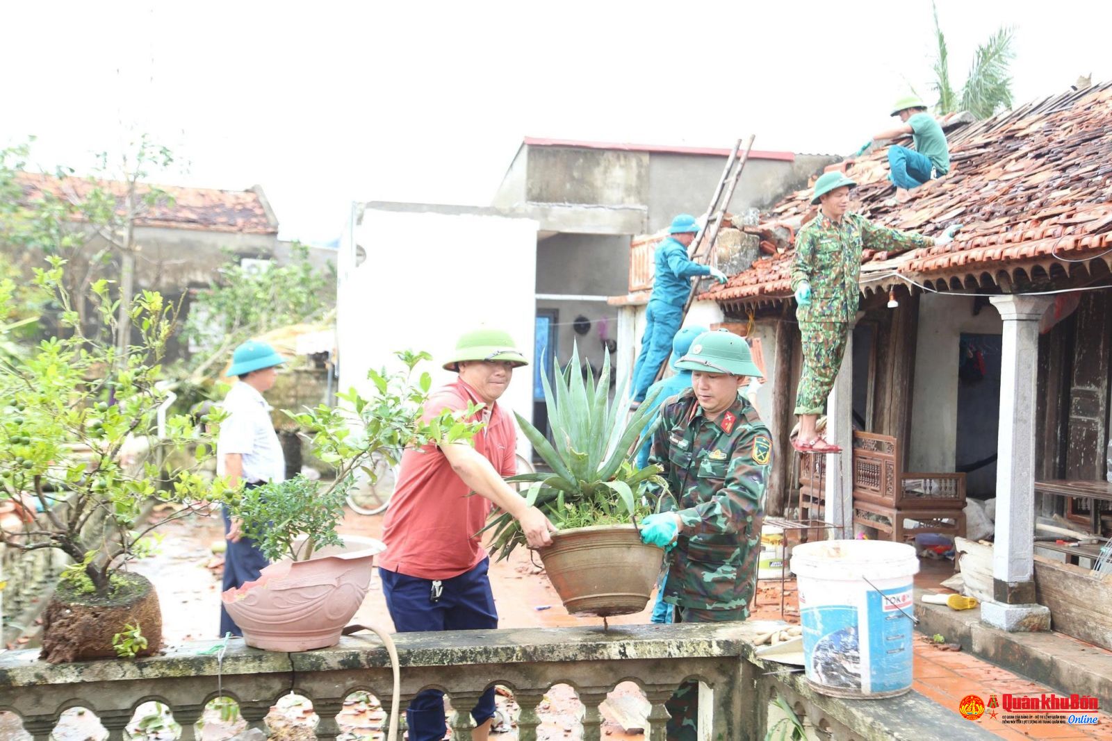 Ban Chỉ huy Phòng thủ khu vực 2 - Hà Trung (Thanh Hóa) hỗ trợ Nhân dân khắc phục hậu quả bão số 10