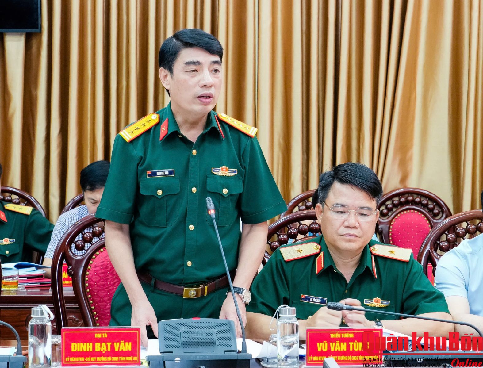 Phát biểu tại hội nghị, Thiếu tướng Đoàn Xuân Bường và đồng chí Nguyễn Khắc Thận đánh giá cao những đóng góp, cống hiến của Đại tá Đinh Bạt Văn trong thời gian đảm nhiệm chức vụ Chỉ huy trưởng. Đồng chí Chính ủy Quân khu và đồng chí Bí thư Tỉnh ủy Nghệ An nhấn mạnh: Đại tá Đinh Bạt Văn là cán bộ bản lĩnh, có phẩm chất đạo đức tốt, đã cùng tập thể Đảng ủy, Bộ CHQS tỉnh lãnh đạo, chỉ đạo lực lượng vũ trang (LLVT) tỉnh hoàn thành tốt mọi nhiệm vụ, góp phần quan trọng vào sự nghiệp xây dựng nền quốc phòng toàn dân vững mạnh trên địa bàn, xây dựng Đảng bộ trong sạch vững mạnh, đơn vị vựng mạnh toàn diện “Mẫu mực, tiêu biểu”. Năm 2025, LLVT tỉnh Nghệ An được Chủ tịch nước tặng Huân chương Bảo vệ Tổ quốc hạng Nhất; Bộ CHQS tỉnh Nghệ An được nhận Cờ thi đua của Bộ Quốc phòng.