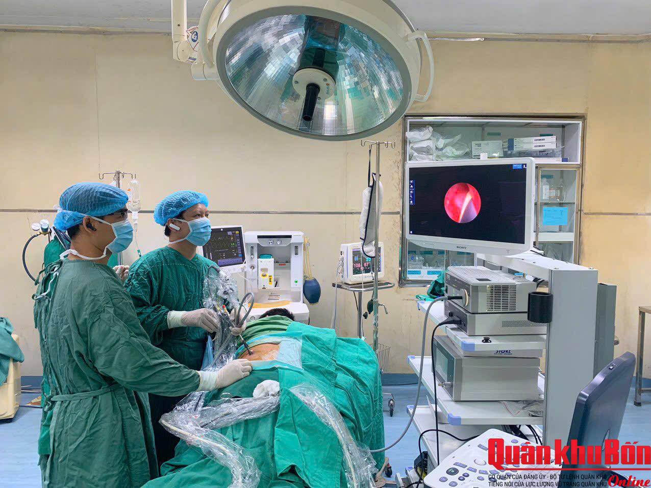 Tìm hiểu chúng tôi được biết thêm, trong những năm qua, bệnh viện được trang bị nhiều trang thiết bị, máy móc hiện đại phục vụ công tác khám, điều trị, chăm sóc sức khỏe cán bộ, chiến sĩ và Nhân dân. Để làm chủ, đưa các trang thiết bị, máy móc hiện đại, thời gian qua Ban Giám đốc bệnh viện đã phát động phong trào tự nghiên cứu, học tập và các khoa, ban đều xây dựng kế hoạch bồi dưỡng cho đội ngũ cán bộ, nhân viên. Sau một thời gian tiếp nhận, những cán bộ, y, bác sỹ được giao nhiệm vụ quản lý, sử dụng đã khai thác hiệu quả các trang thiết bị này vào việc chăm sóc sức khỏe người bệnh. Một số căn bệnh trước đây phải chuyển lên tuyến trên hoặc phẫu thuật bằng phương pháp mổ thì nay thực hiện bằng nội soi như, thay khớp háng toàn phần, bán phần; phẫu thuật cột sống; cắt ổ tử cung toàn phần, bán phần; phẫu thuật dạ dày, tán sỏi bằng phương pháp nội soi...