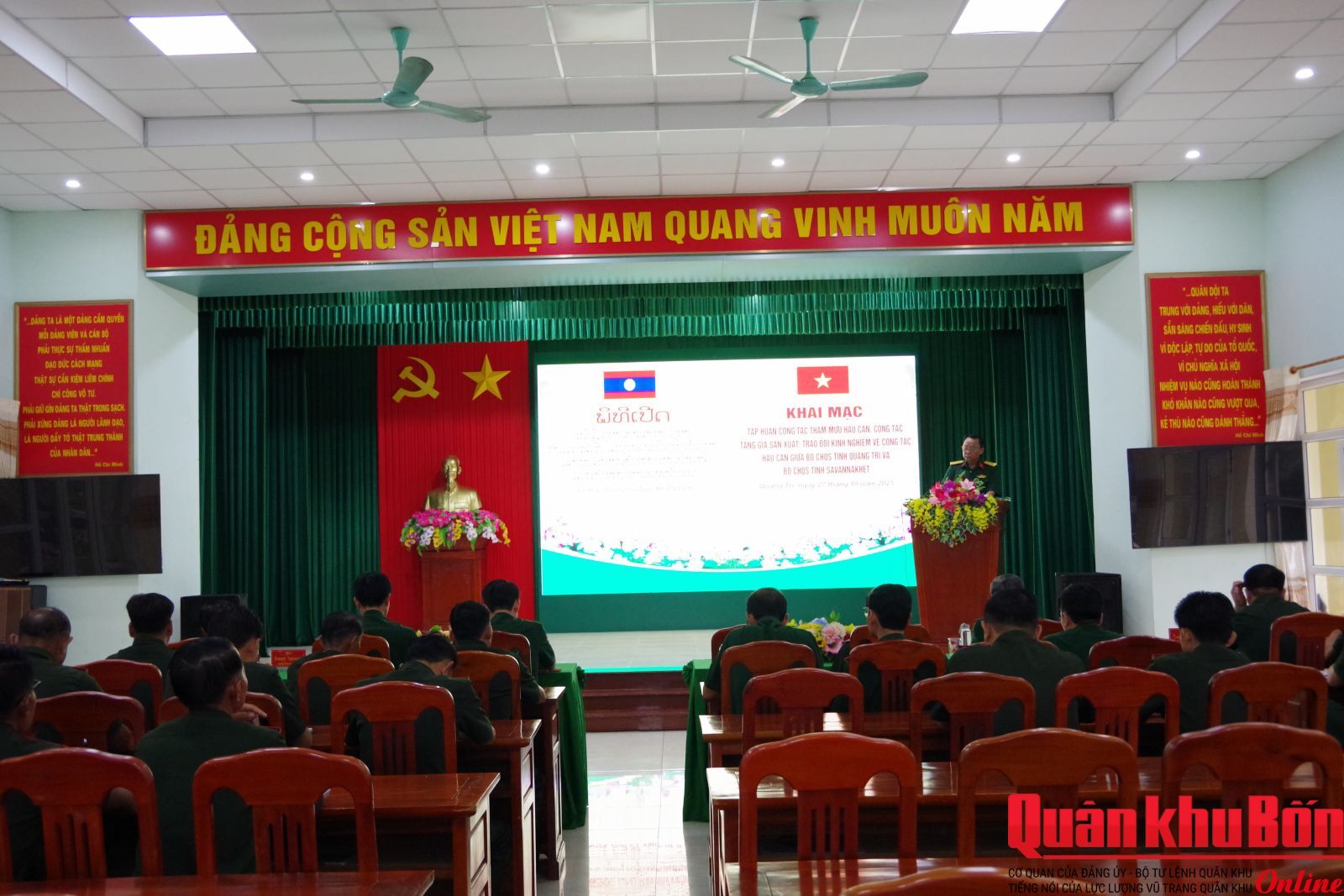 Phát biểu Khai mạc lớp tập huấn, Đại tá Cao Phi Sơn, Phó Chỉ huy trưởng Bộ CHQS tỉnh Quảng Trị nhấn mạnh: hoạt động tập huấn và trao đổi kinh nghiệm giữa hai Bộ CHQS tỉnh là dịp để cán bộ, nhân viên ngành Hậu cần hai bên cùng học hỏi, chia sẻ những cách làm hay, mô hình hiệu quả trong công tác tham mưu, bảo đảm hậu cần, tổ chức tăng gia sản xuất; qua đó tăng cường tình đoàn kết, gắn bó hữu nghị đặc biệt, góp phần củng cố vững chắc tình đoàn kết giữa lực lượng vũ trang và nhân dân hai tỉnh Quảng Trị – Savannakhet.