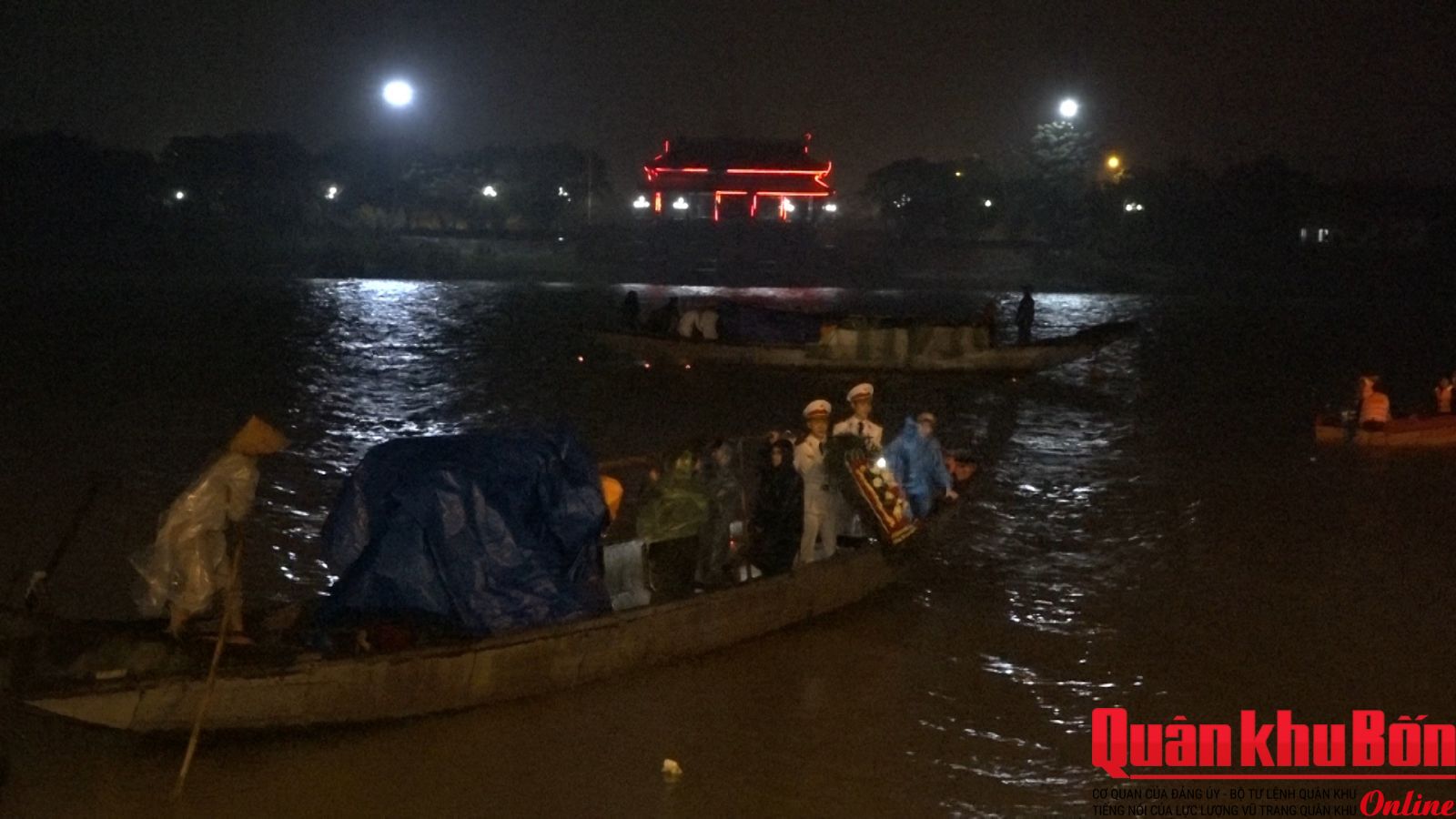 Trong không khí trang nghiêm xúc động, các đồng chí đại biểu, cán bộ chiến sĩ lực lượng vũ trang tỉnh và bà con Nhân dân đã kính cẩn dâng hương, dâng hoa tưởng niệm các anh hùng liệt sĩ Thành Cổ và thả bè hoa và đèn hoa đăng trên sông Thạch Hãn.