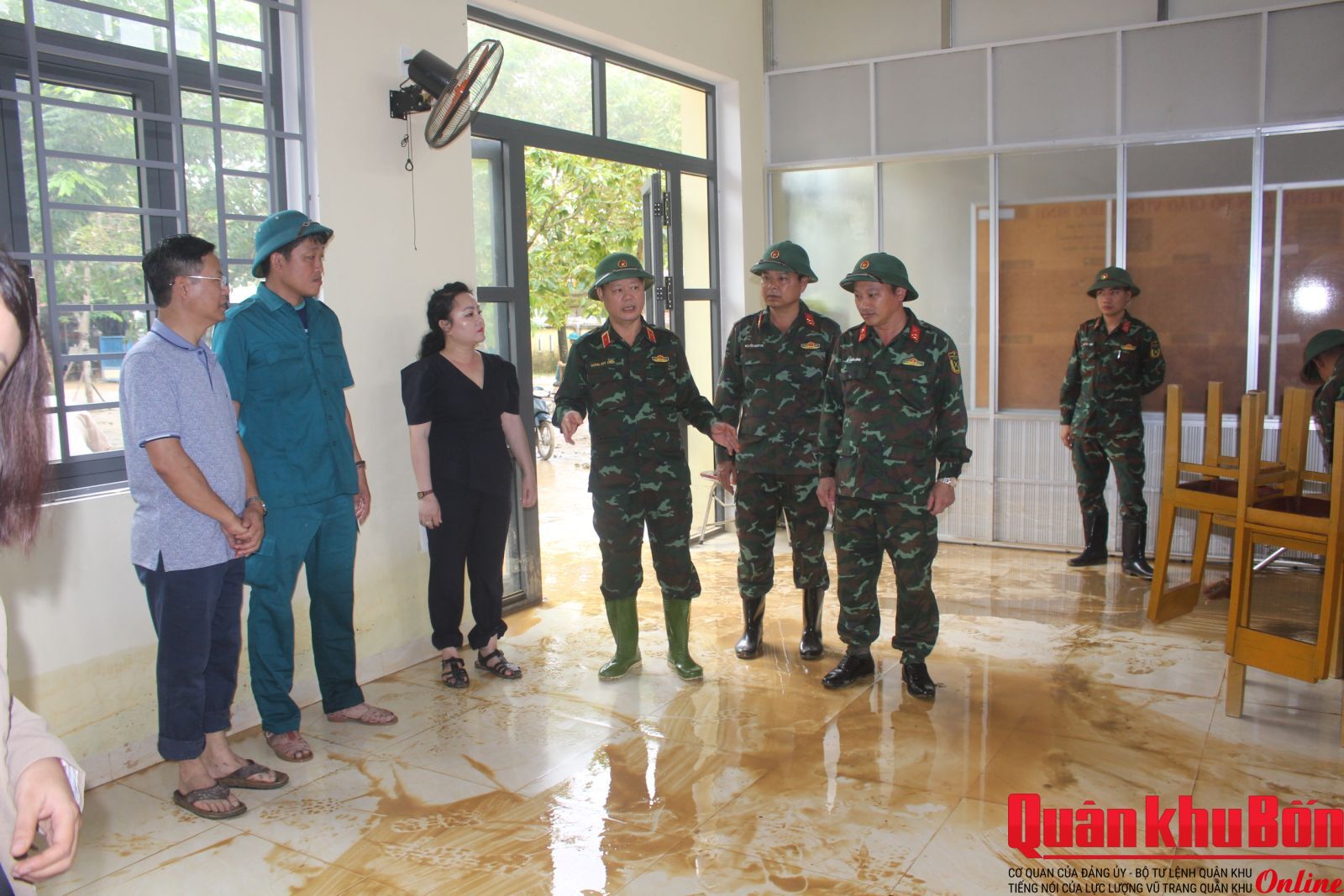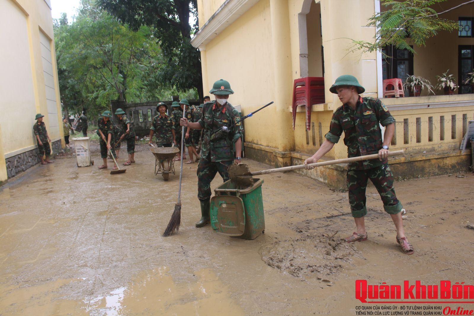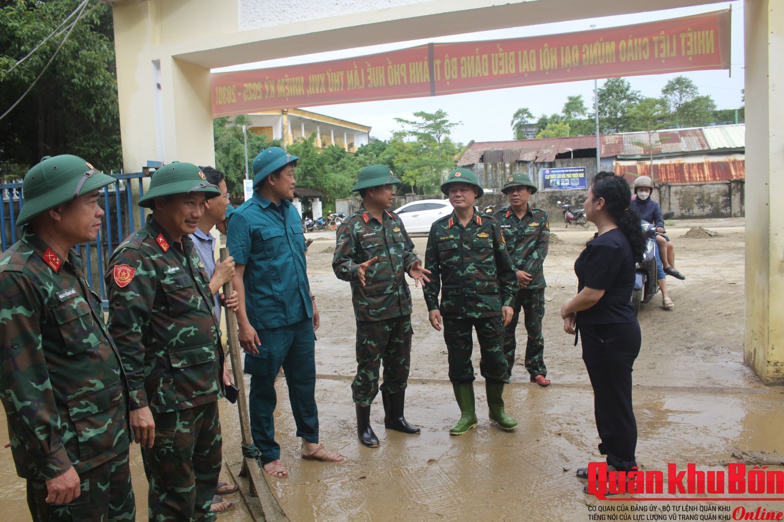 Từ sáng sớm, hơn 30 cán bộ, chiến sĩ Tiểu đoàn Bộ binh 1, Trung đoàn Bộ binh 6, Bộ Chỉ huy Quân sự thành phố Huế đã có mặt tại Trường Mầm non Thủy Thanh 1 (cơ sở Vân Thê Đập), phường Thủy Thanh. Để đến được điểm trường nằm sát bờ sông Như Ý này, bộ đội phải lội bộ qua quãng đường gần 1,5 km ngập bùn lầy.