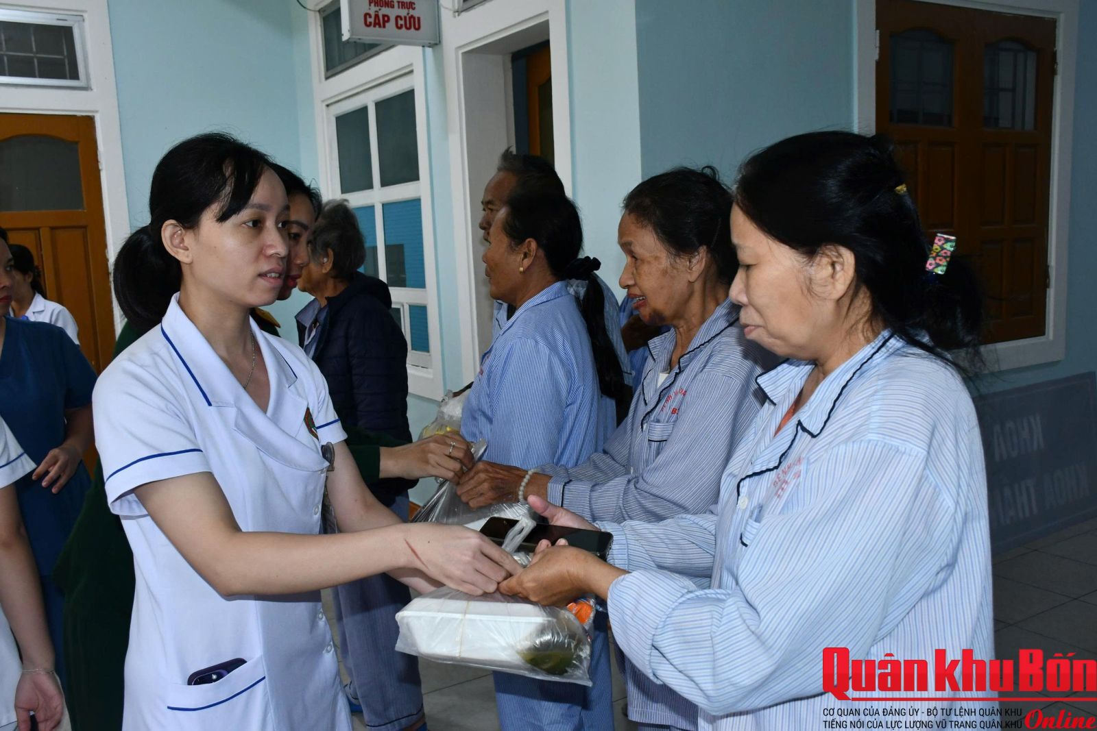 Những ngày mưa lớn vừa qua, đường sá ở Huế ngập sâu, hàng quán phải tạm nghỉ khiến việc tiếp tế thực phẩm cho bệnh nhân trở nên khó khăn. Vì thế, khi biết bộ đội phát cơm miễn phí, rất đông người bệnh và thân nhân đã tìm đến điểm phát. Với các trường hợp bệnh nặng, chị em Hội phụ nữ cùng các mạnh thường quân mang từng suất ăn đến tận giường bệnh. Bà Hồ Thị Kiều Anh, 63 tuổi, đang điều trị tại khoa Thận nhân tạo xúc động nói: “Cơm bộ đội nấu rất ngon và đầy đủ chất. Trong những ngày mưa lũ, nhận được sự quan tâm này, chúng tôi thực sự ấm lòng”.