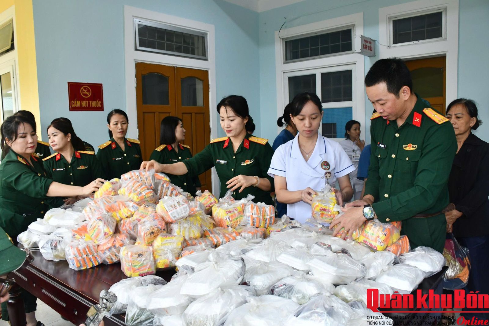 Chia sẻ khó khăn cùng người dân trong những ngày mưa lũ, cán bộ, hội viên Hội Phụ nữ Bộ Chỉ huy Quân sự (CHQS) thành phố Huế đã tổ chức trao tặng hàng trăm suất ăn miễn phí cho bệnh nhân đang điều trị tại Bệnh viện Quân y 268. Cùng thời điểm, cán bộ, chiến sĩ các cơ quan, đơn vị thuộc Bộ CHQS thành phố cũng triển khai hoạt động hỗ trợ sửa chữa, thay dầu nhớt, thay linh kiện miễn phí cho hàng trăm xe máy của sinh viên bị ngập nước.