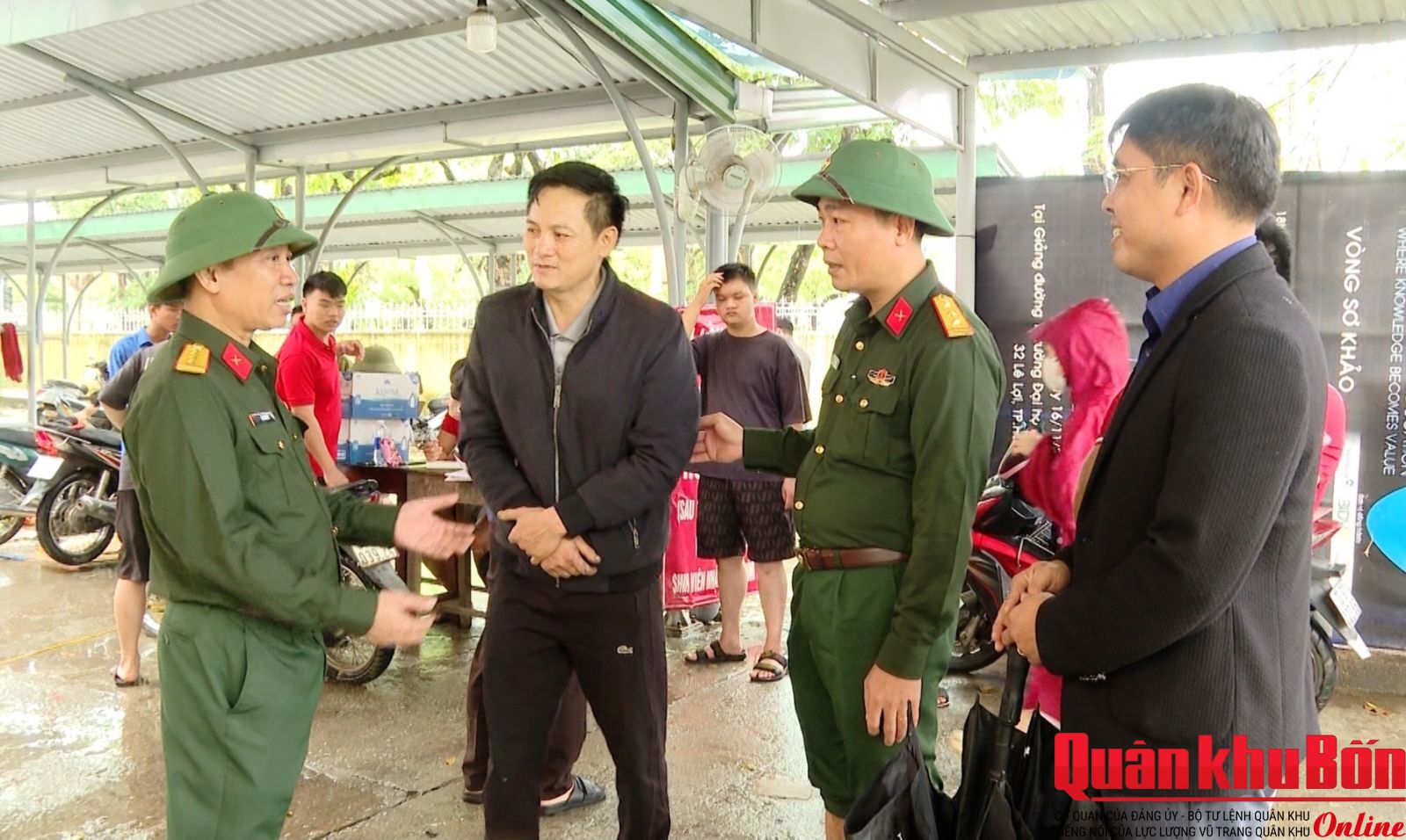 Bộ đội tặng suất ăn, sửa xe miễn phí cho bà con mùa lũ.