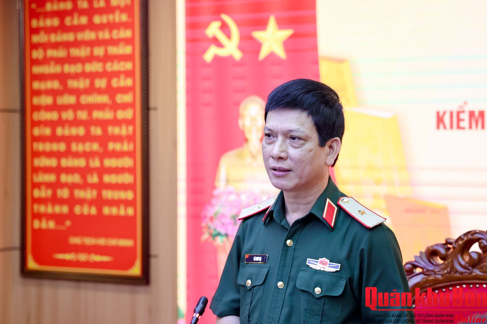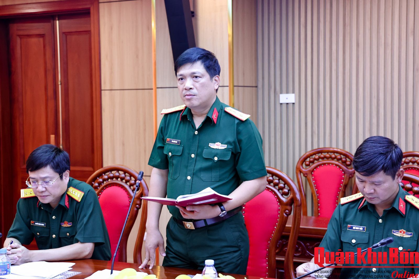Đại tá Ngô Nam Cường, Phó Tư lệnh Quân khu; Đại tá Nguyễn Trung Thành, Phó Tham mưu trưởng Quân khu; Đại tá Phạm Đức Tuấn, Chủ nhiệm Hậu cần - Kỹ thuật Quân khu; thủ trưởng các cơ quan, Ban Quản lý dự án làm việc cùng đoàn công tác.