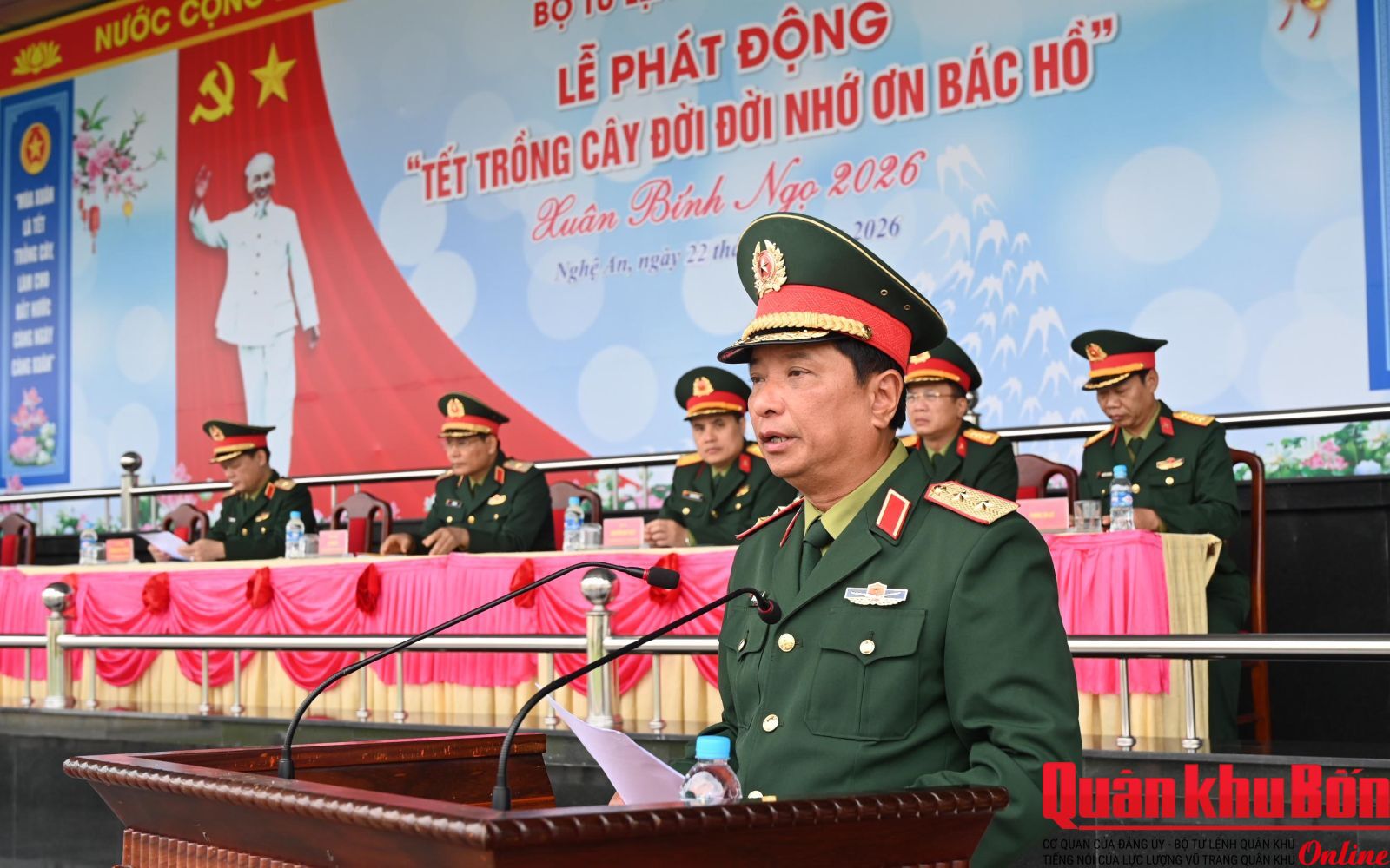 Sáng 22/2/2026, trong không khí phấn khởi đầu Xuân Bính Ngọ, Bộ Tư lệnh Quân khu 4 tổ chức Lễ phát động "Tết trồng cây Đời đời nhớ ơn Bác Hồ”. Dự buổi lễ có Trung tướng Hà Thọ Bình, Phó Bí thư Đảng ủy, Tư lệnh Quân khu; Thiếu tướng Đoàn Xuân Bường, Ủy viên Ban Chấp hành Trung ương Đảng, Bí thư Đảng ủy, Chính ủy Quân khu cùng các đồng chí trong Thường vụ Đảng ủy, Bộ Tư lệnh Quân khu và đông đảo cán bộ, nhân viên, chiến sĩ khối 4 cơ quan Quân khu.
