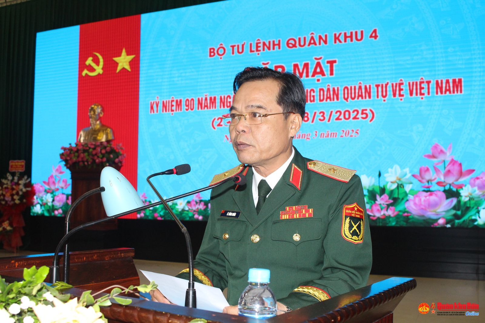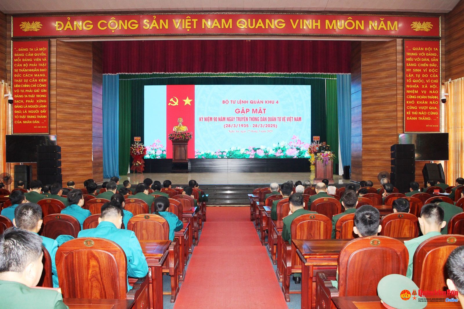 Sáng ngày 27/3/2025, Bộ Tư lệnh Quân khu 4 long trọng tổ chức gặp mặt kỷ niệm 90 năm ngày truyền thống dân quân tự vệ Việt Nam (28/3/1935 – 28/3/2025). Dự buổi gặp mặt có đồng chí Trung tướng Trần Võ Dũng, Bí thư Đảng ủy, Chính ủy Quân khu; đồng chí Trung tướng Hà Thọ Bình, Phó Bí thư Đảng ủy, Tư lệnh Quân khu. Tham dự buổi gặp mặt còn có các đồng chí trong Thường vụ Đảng ủy, Bộ Tư lệnh Quân khu cùng cán bộ ngành dân quân qua các thời kỳ.