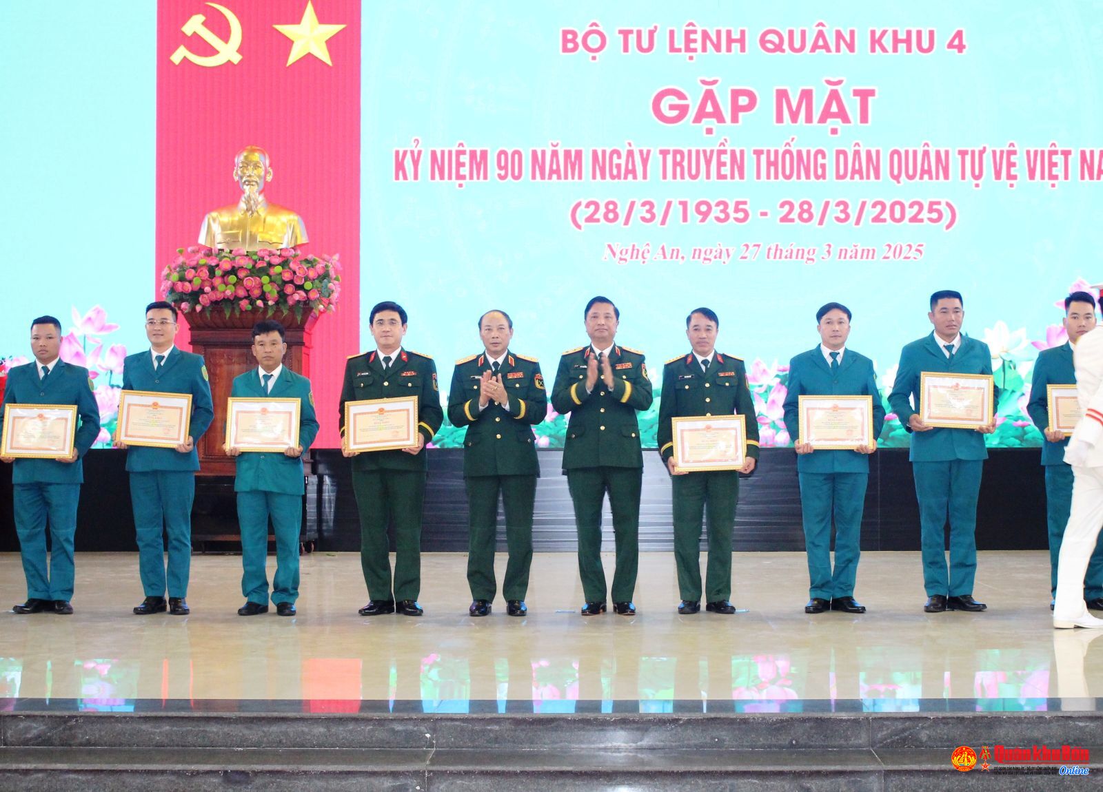 Tại buổi gặp mặt, Bộ Tư lệnh Quân khu đã trao tặng Bằng Khen cho 8 tập thể vì đã lập thành tích xuất sắc trong xây dựng Dân quân tự vệ nhân kỷ niệm 90 năm ngày tuyền thống dân quân tự vệ Việt Nam (28/3/1935 – 28/3/2025).