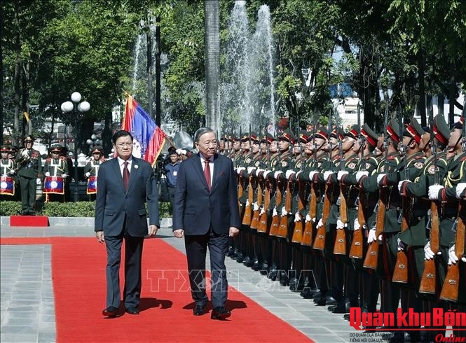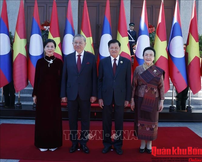 Sáng 1/12/2025, Lễ đón chính thức Tổng Bí thư Tô Lâm và phu nhân Ngô Phương Ly, cùng Đoàn đại biểu cấp cao Việt Nam thăm cấp Nhà nước Cộng hòa dân chủ nhân dân Lào, dự Lễ kỷ niệm 50 năm Quốc khánh nước Cộng hòa dân chủ nhân dân Lào và đồng chủ trì Cuộc gặp cấp cao giữa Đảng Cộng sản Việt Nam và Đảng Nhân dân Cách mạng Lào đã diễn ra trọng thể tại Phủ Chủ tịch theo nghi thức cao nhất dành cho nguyên thủ quốc gia. Tổng Bí thư, Chủ tịch nước Lào Thongloun Sisoulith và phu nhân chủ trì lễ đón.