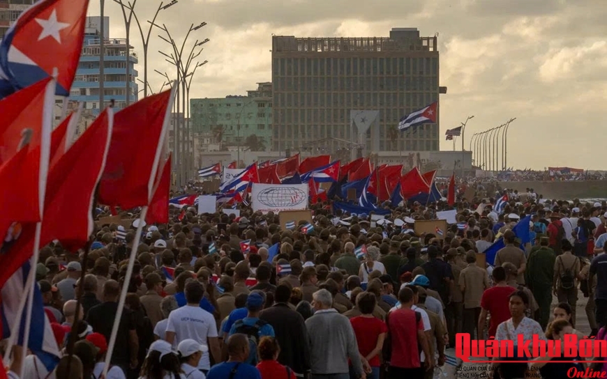 Chủ tịch Cuba Miguel Diaz-Canel đã có mặt và chào đón người biểu tình trước khi đoàn diễu hành bắt đầu đi dọc đại lộ ven biển Malecon nổi tiếng của thủ đô.