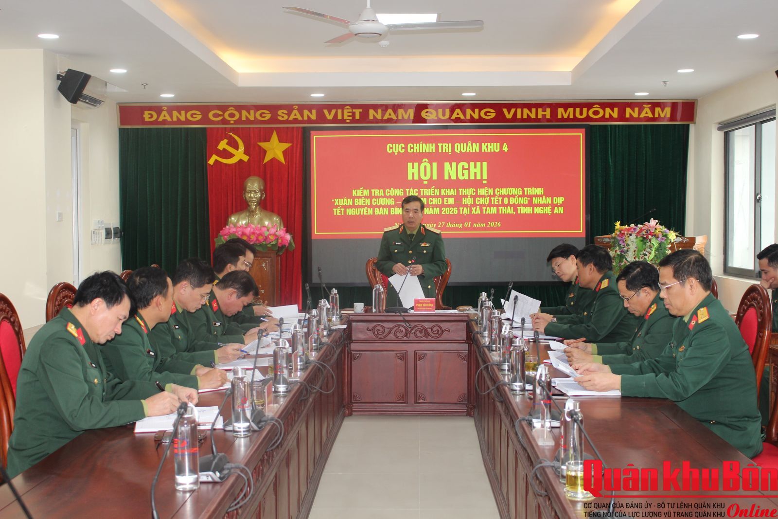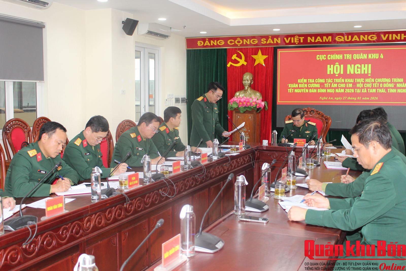 Chiều ngày 27/1/2026, Thiếu tướng Phạm Văn Đông, Ủy viên Ban Thường vụ Đảng ủy, Chủ nhiệm Chính trị Quân khu 4 đã chủ trì kiểm tra công tác chuẩn bị tổ chức Chương trình “Xuân biên cương - Tết ấm cho em - Hội chợ Tết o đồng” tại xã Tam Thái, tỉnh Nghệ An.