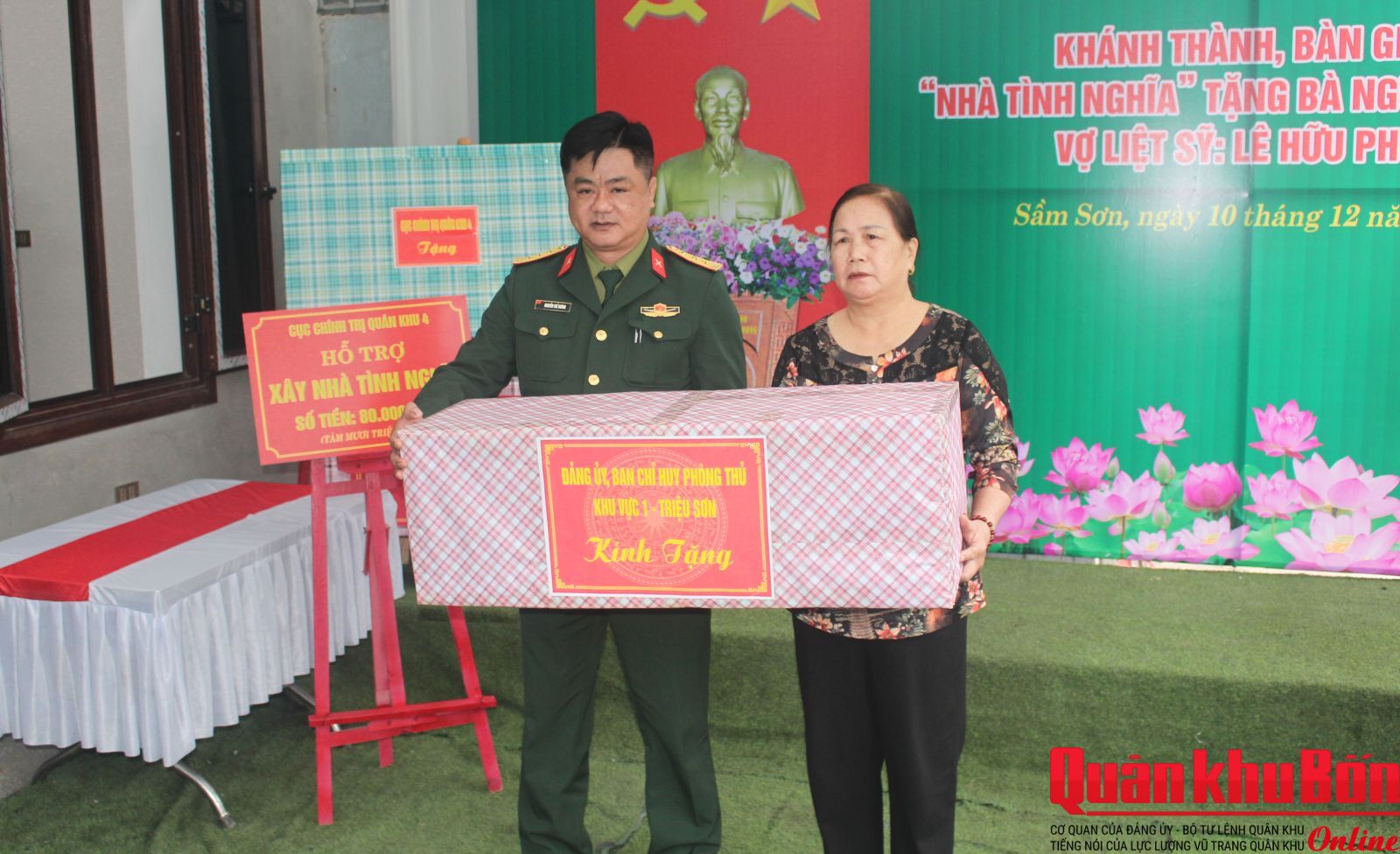 Sáng ngày 10/12/2025, tại phường Sầm Sơn, tỉnh Thanh Hóa, Cục Chính trị Quân khu 4 và Bộ Chỉ huy Quân sự (CHQS) tỉnh Thanh Hóa; cấp ủy, chính quyền địa phương tổ chức Lễ khánh thành và bàn giao “Nhà tình nghĩa” tặng bà Nguyễn Thị Hà, vợ liệt sĩ Lê Hữu Phúc, nguyên Chủ nhiệm Chính trị Quân khu 4.