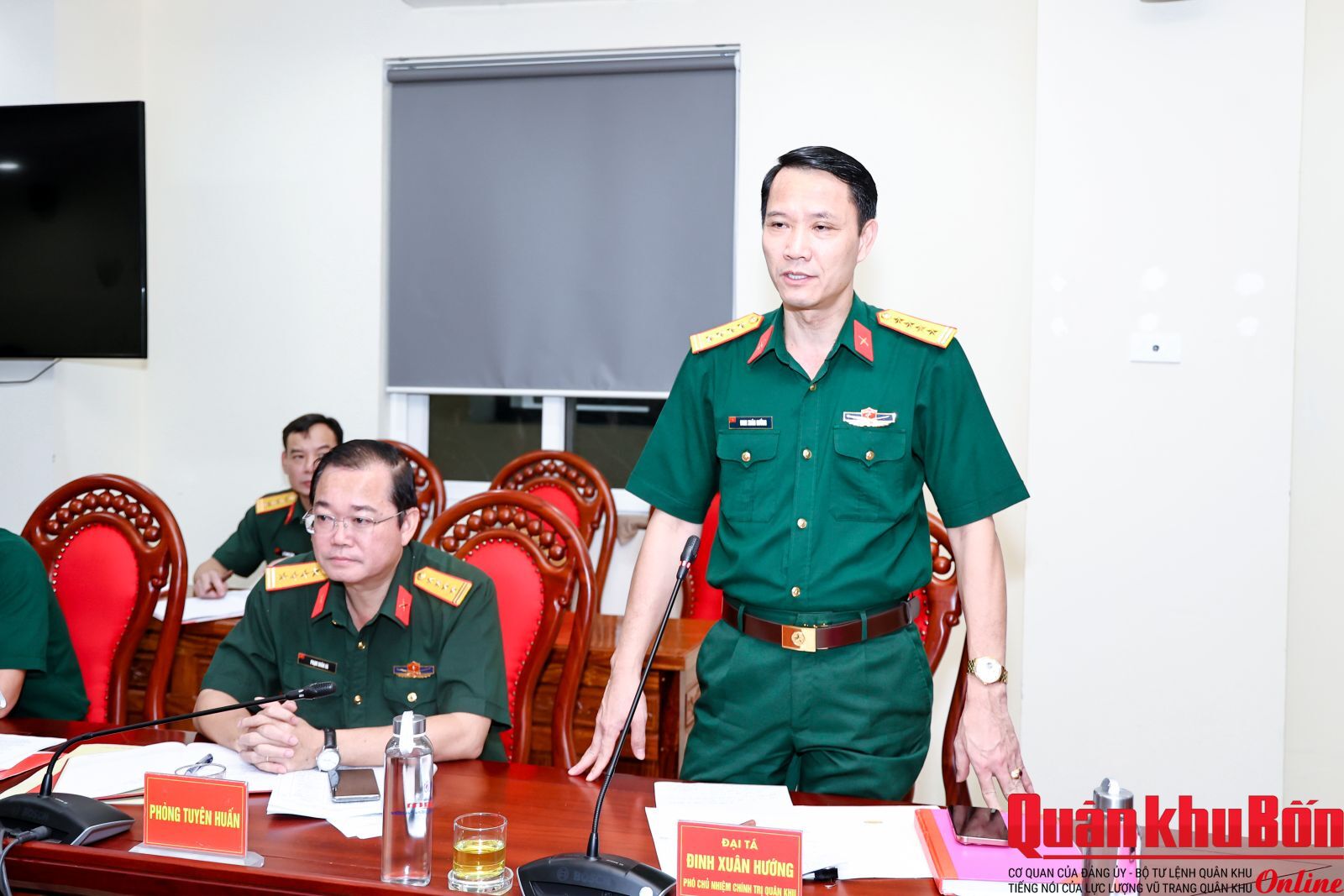 Thiếu tướng Phan Văn Sỹ, Phó Chủ nhiệm Chính trị Quân khu, Bí thư Đảng ủy Cục Chính trị chủ trì hội nghị. Dự hội nghị có Đại tá Đinh Xuân Hướng, Phó Chủ nhiệm Chính trị Quân khu; đại diện các phòng, ban, cơ quan chức năng thuộc Cục Chính trị.