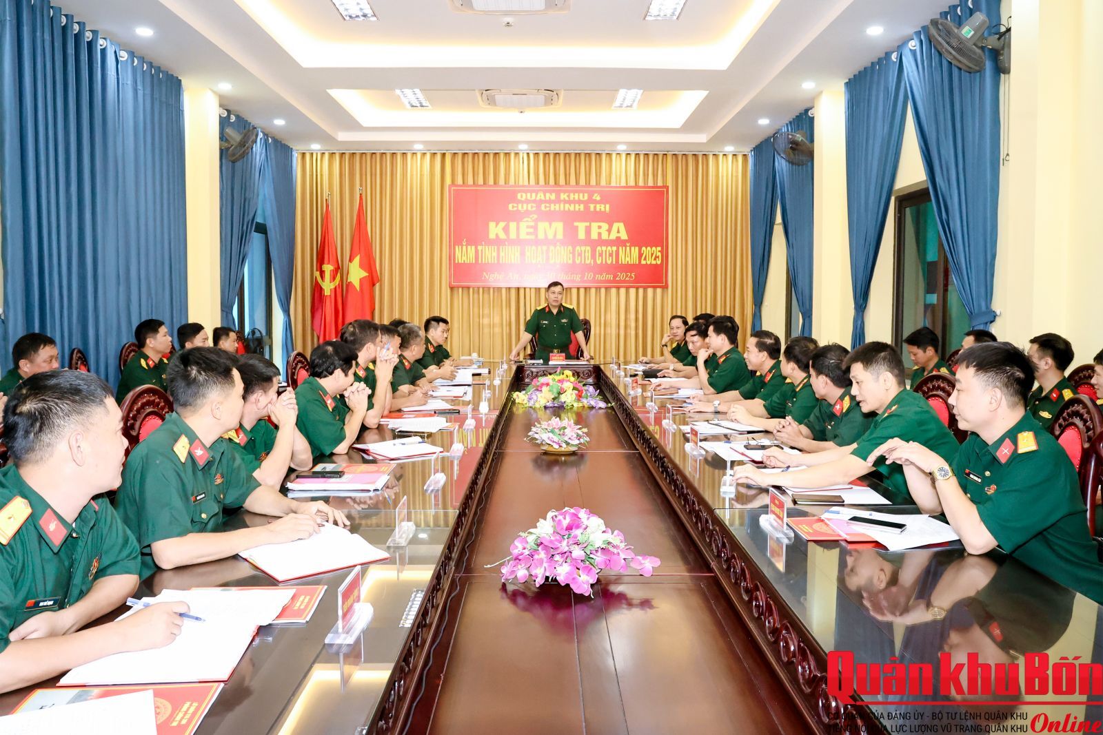 Sáng ngày 30/10/2025, Đoàn công tác Cục Chính trị Quân khu 4 do Đại tá Nguyễn Kỳ Hồng, Phó Chủ nhiệm Chính trị Quân khu làm Trưởng đoàn đã tiến hành kiểm tra kết quả thực hiện nhiệm vụ công tác Đảng, công tác chính trị năm 2025 tại Lữ đoàn Tăng - Thiết giáp 206.