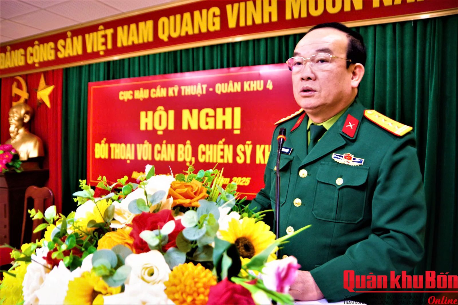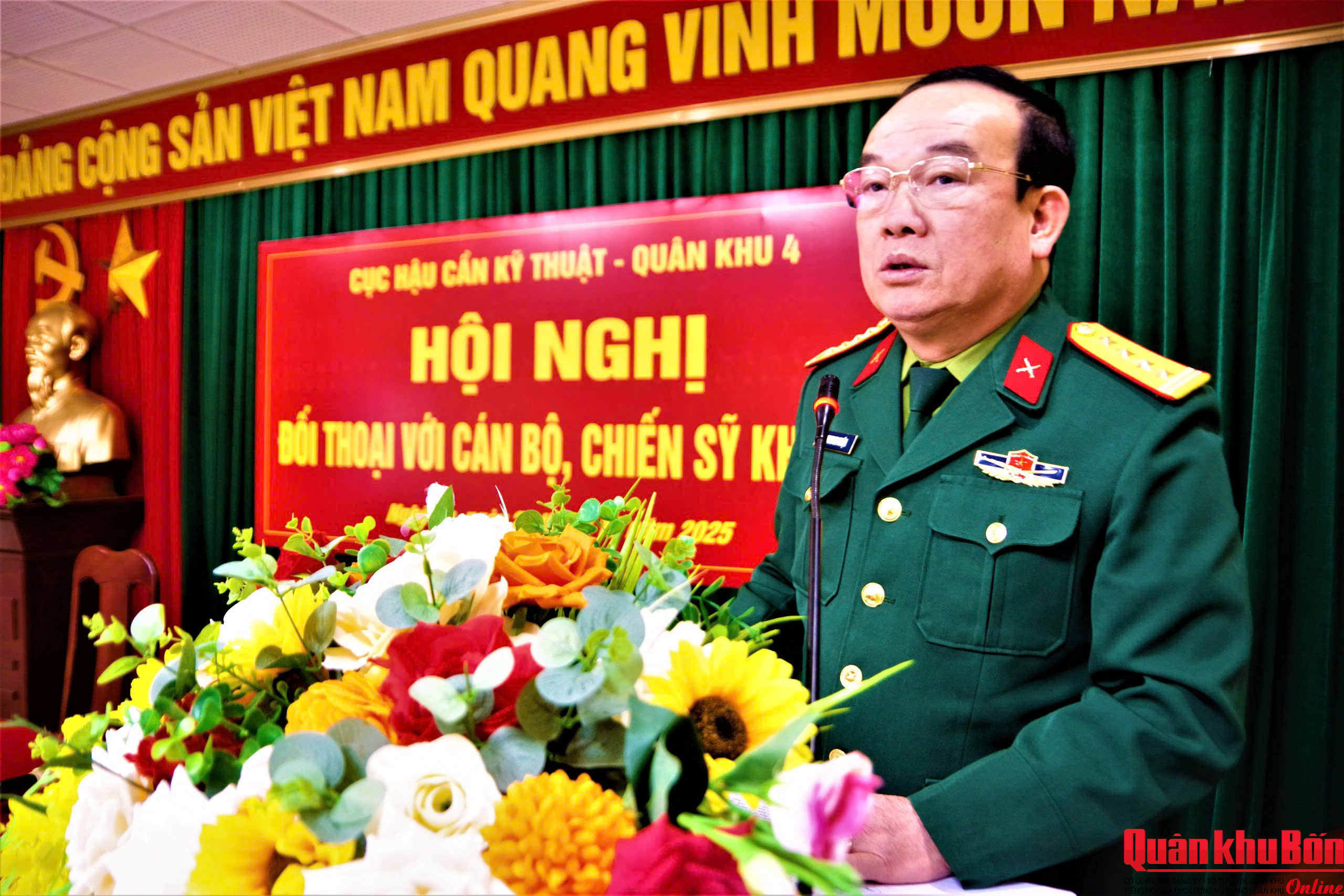 Ngày 25/12/2025, Đoàn công tác Cục Hậu cần – Kỹ thuật Quân khu 4 do Đại tá Phan Gia Thuận, Bí thư Đảng ủy, Chính ủy Cục Hậu cần – Kỹ thuật làm trưởng đoàn đã tiến hành kiểm tra và đối thoại dân chủ tại Kho KX3, thuộc Cục Hậu cần – Kỹ thuật Quân khu 4.