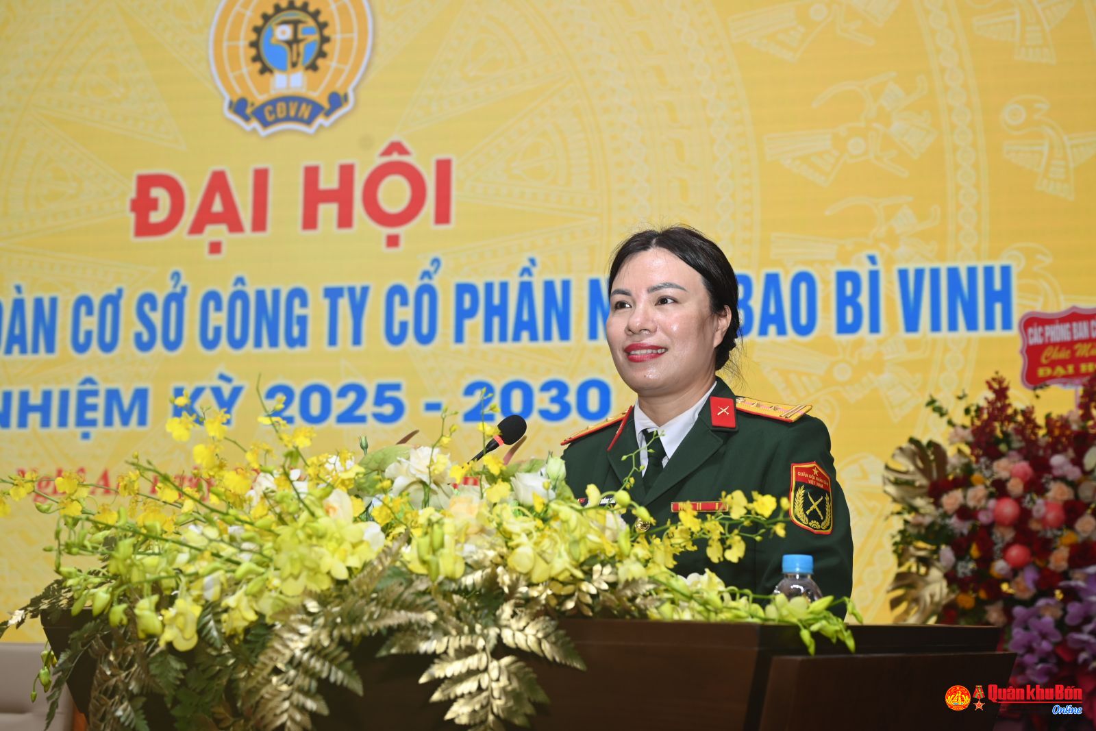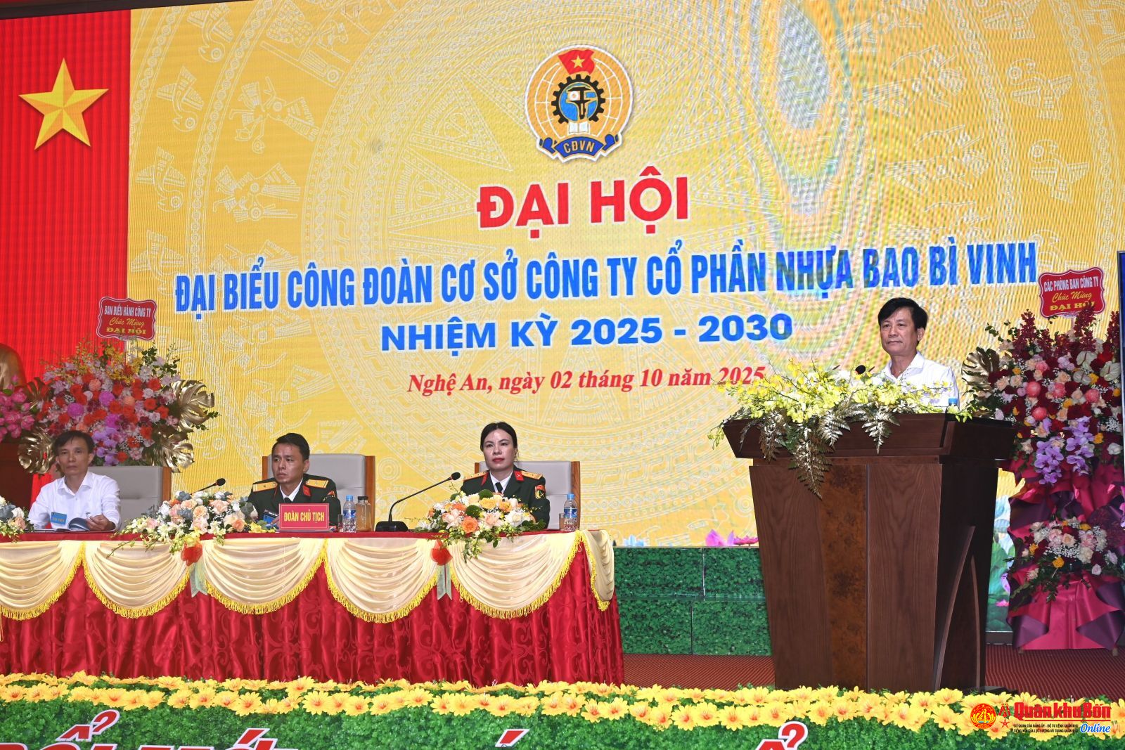 Với tinh thần “Đoàn kết - Dân chủ - Kỷ cương - Đổi mới - Phát triển”, Đại hội Đại biểu Công đoàn cơ sở Công ty Nhựa Bao bì Vinh đã đánh giá toàn diện kết quả thực hiện nghị quyết Đại hội công đoàn cơ sở giai đoạn 2023 - 2025, rút ra bài học kinh nghiệm, xác định phương hướng, mục tiêu, chỉ tiêu, nhiệm vụ và giải pháp tổ chức thực hiện trong nhiệm kỳ 2025 - 2030. Thảo luận đóng góp ý kiến vào dự thảo Báo cáo của Cục Chính trị tại Hội nghị đại biểu công đoàn Quân khu lần thứ X, giai đoạn 2023 - 2025.