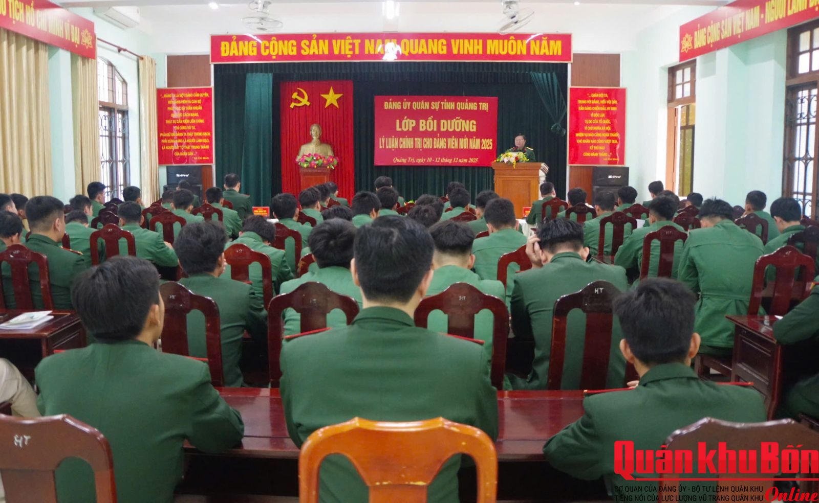 Lớp bồi dưỡng năm 2025 được Đảng ủy Quân sự tỉnh tổ chức với 55 học viên là đảng viên mới đến từ các tổ chức cơ sở đảng trực thuộc. Trong đó, 50 học viên học trực tiếp tại Bộ CHQS tỉnh; 5 học viên học trực tuyến tại Đảng bộ bộ phận Tiểu đoàn hỗn hợp đảo Cồn Cỏ thuộc Đảng bộ Ban Chỉ huy Phòng thủ khu vực 3 – Vĩnh Linh. Việc tổ chức học theo hai phương thức trực tiếp và trực tuyến nhằm bảo đảm phù hợp điều kiện công tác, địa bàn đóng quân, đồng thời tạo điều kiện thuận lợi để tất cả đảng viên mới đều được tham gia đầy đủ chương trình bồi dưỡng.