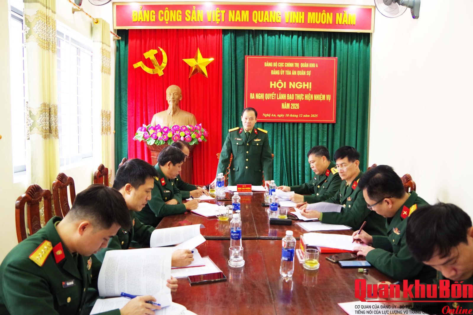 Đơn vị phấn đấu xây dựng Đảng bộ hoàn thành xuất sắc nhiệm vụ; xây dựng Tòa án Quân sự hai cấp vững mạnh toàn diện “Mẫu mực, tiêu biểu”; có 01 cơ quan đạt Cờ thi đua của Tòa án Nhân dân tối cao. Năm 2026 xác định 2 đột phá: Nâng cao chất lượng thực hiện nhiệm vụ chính trị, trọng tâm là công tác giải quyết, xét xử các vụ án và Đẩy mạnh hoạt động chuyển đổi số trong công tác chuyên môn.