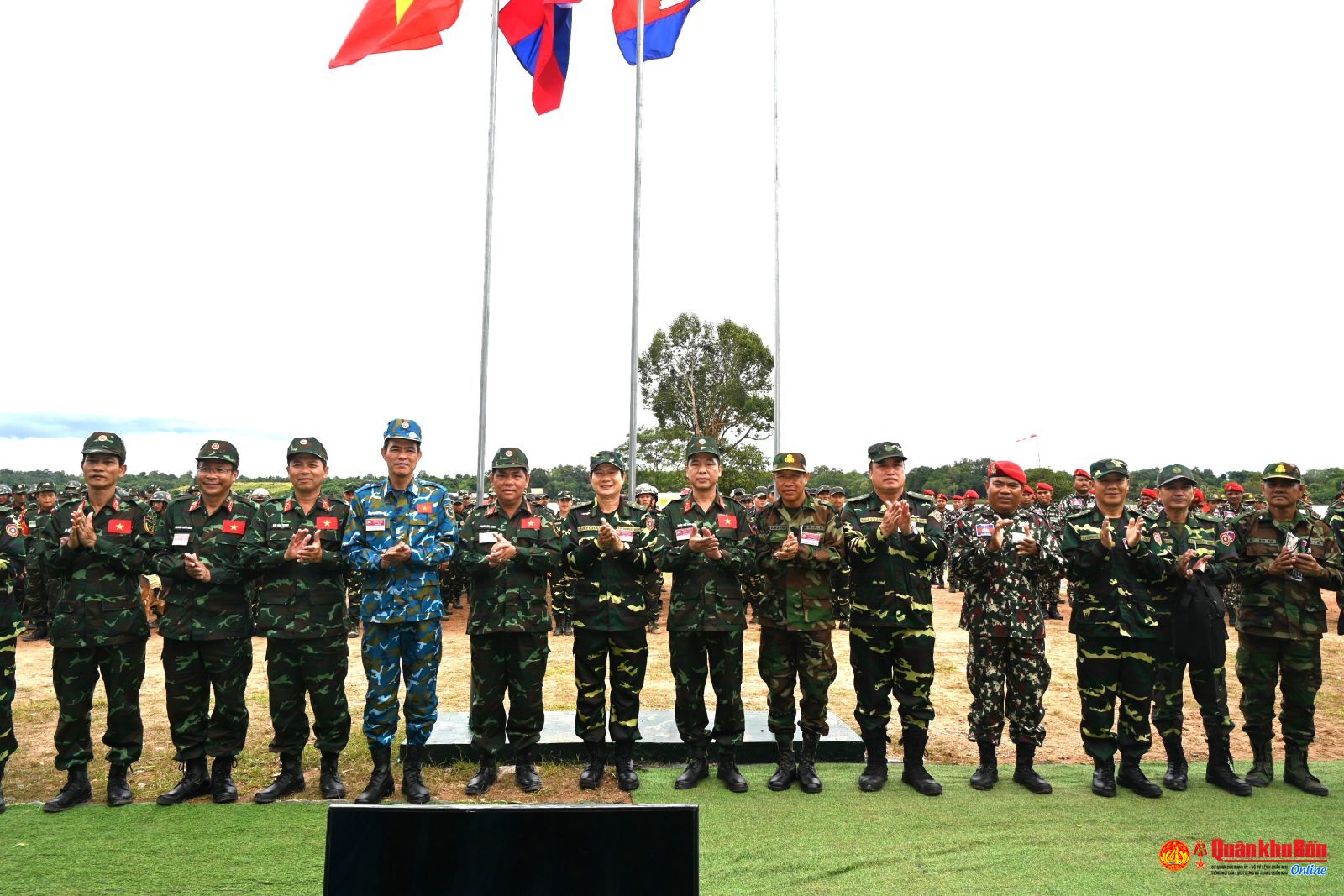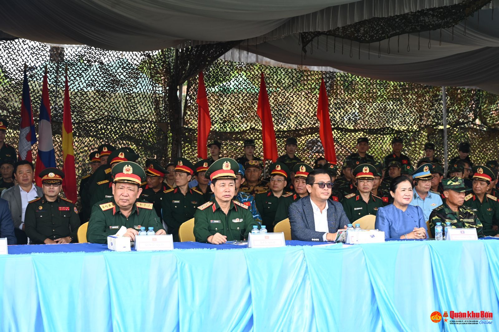Trung tướng SayChay ComMaSith, Thứ trưởng Bộ Quốc phòng, Tổng Tham mưu trưởng QĐND Lào, Trưởng ban Chỉ đạo diễn tập; Thượng tướng Huỳnh Chiến Thắng, Phó Tổng Tham mưu trưởng QĐND Việt Nam; Trung tướng Đỗ Xuân Tụng, Phó Chủ nhiệm Tổng cục Chính trị QĐND Việt Nam; đại biểu lãnh đạo Bộ Quốc phòng ba nước; Trung tướng Hà Thọ Bình, Tư lệnh Quân khu; Thiếu tướng Lê Hồng Nhân, Phó Tư lệnh, Tham mưu trưởng Quân khu 4 dự, theo dõi diễn tập, .