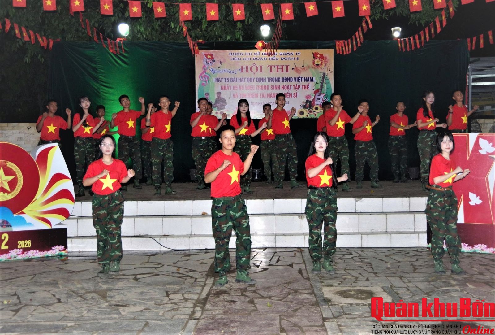 Nằm trong chuỗi hoạt động chào mừng 51 năm Ngày Giải phóng hoàn toàn miền Nam, thống nhất đất nước (30/4/1975 - 30/4/2026); 140 năm Ngày Quốc tế lao động (01/5/1886 - 01/5/2026), các tổ chức Đoàn thuộc Đoàn cơ sở Trung đoàn 19, Sư đoàn 968 đã tổ chức Hội thi hát 15 bài hát quy định, nhảy 5 vũ điệu trong sinh hoạt tập thể và tìm kiếm tài năng chiến sĩ.