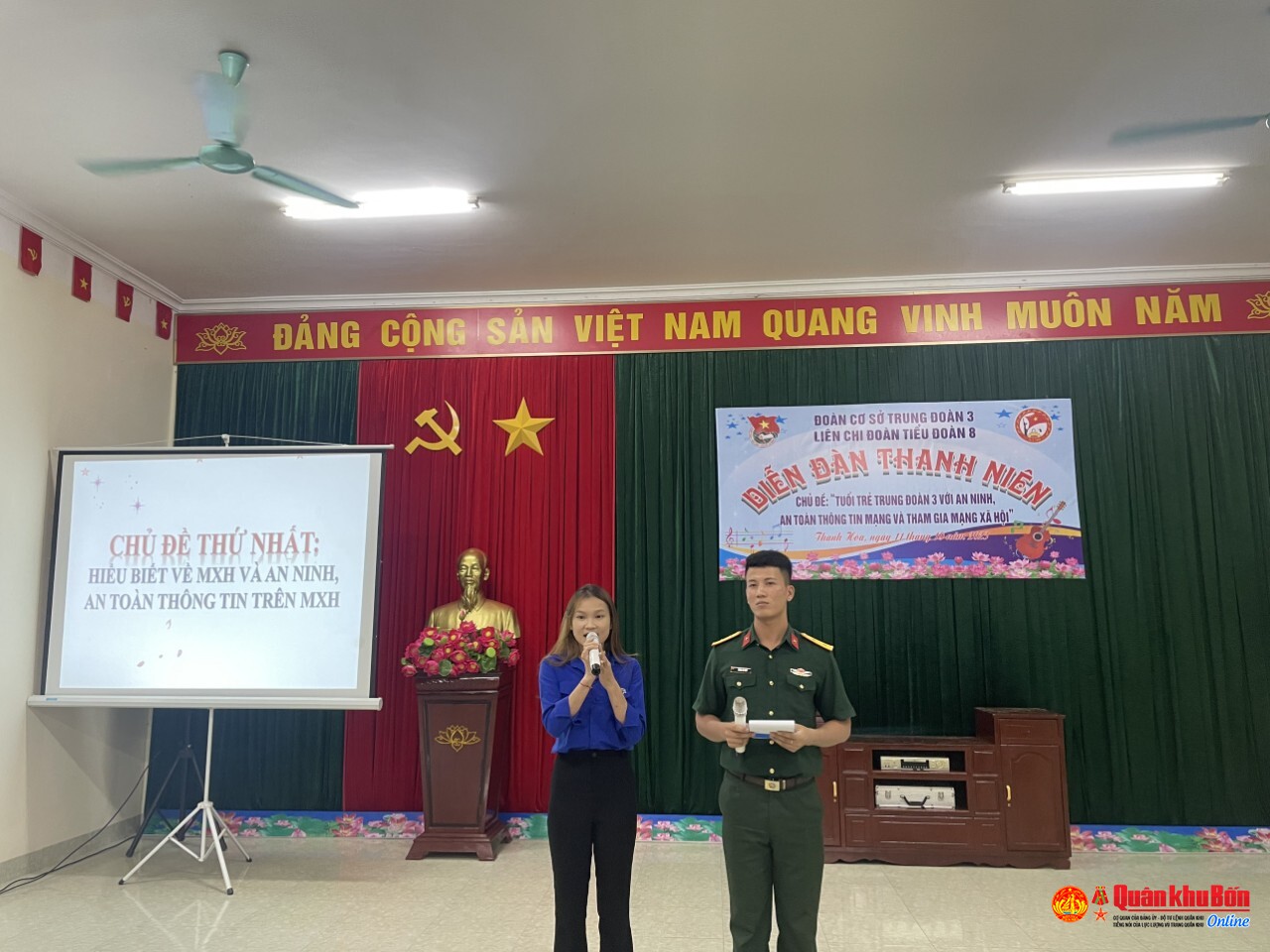 Nằm trong chuỗi hoạt động chào mừng kỷ niệm 78 năm Ngày truyền thống lực lượng vũ trang Quân khu 4 (15/10/1945 - 15/10/2023), tối ngày 11/10/2023, các Liên Chi đoàn Tiểu đoàn thuộc Đoàn Cơ sở Trung đoàn 3, Sư đoàn 324 đã tổ chức diễn đàn thanh niên với chủ đề “Tuổi trẻ Trung đoàn 3 với an ninh, an toàn thông tin và tham gia mạng xã hội”. Tham gia diễn đàn có đông đủ cán bộ, đoàn viên đơn vị và các đơn vị kết nghĩa.