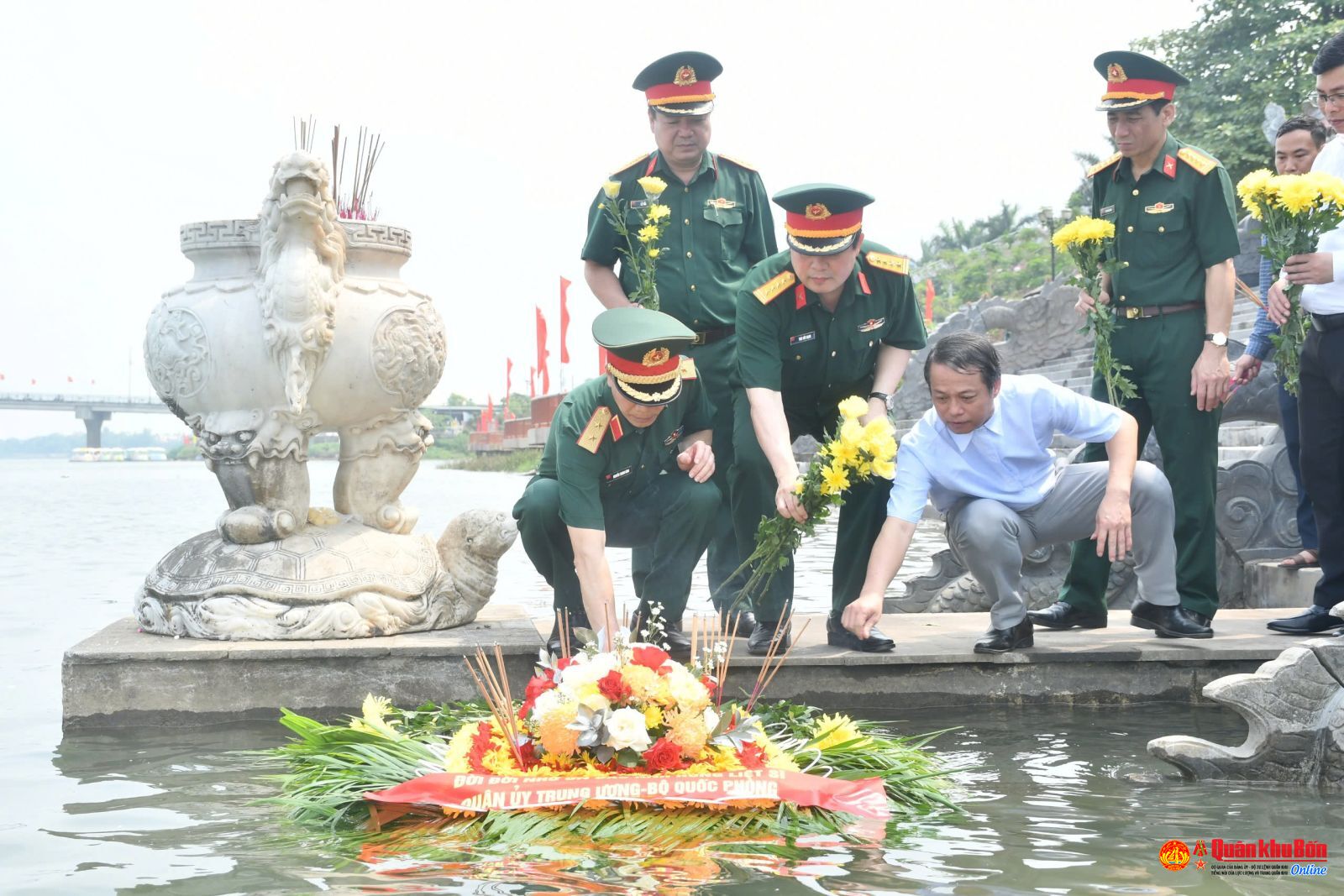 Đoàn cũng đã đến bến thả hoa trên sông Thạch Hãn, thực hiện nghi lễ thả vòng hoa, thả hoa tươi xuống dòng sông lịch sử. Trong không khí trang nghiêm, các thành viên trong đoàn đã bày tỏ lòng tri ân sâu sắc đối với những người lính đã hóa thân vào lòng đất mẹ, dòng sông quê hương, để đất nước có ngày độc lập, tự do hôm nay.