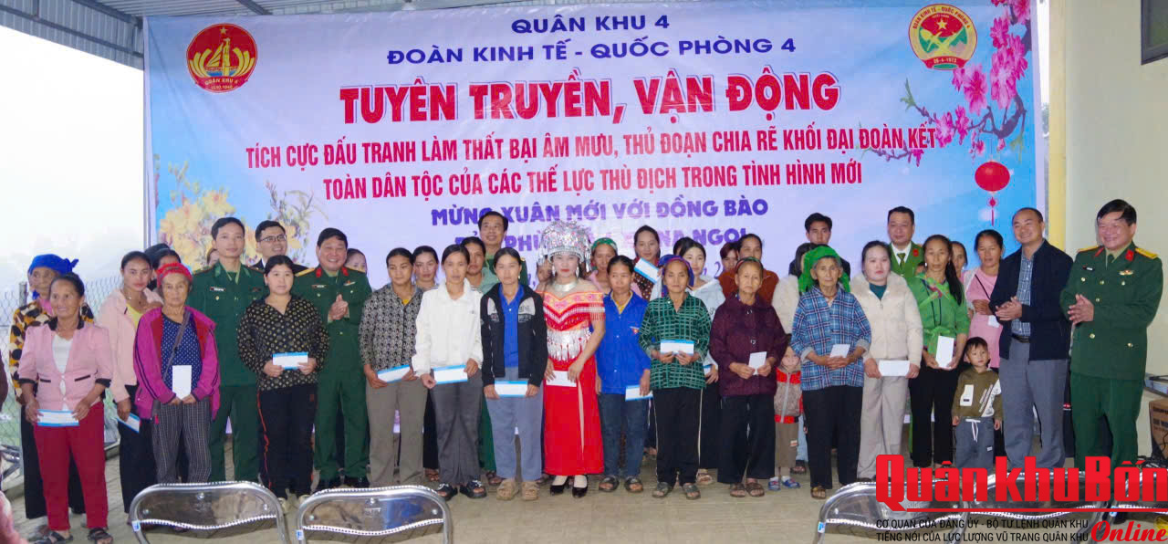 Trong khuôn khổ chương trình, Đoàn KT-QP 4 đã triển khai hoạt động tuyên truyền phổ biến, giáo dục pháp luật cơ động dọc các trục đường dân sinh và khu dân cư, đồng thời phát tờ rơi hướng dẫn bà con dân bản nâng cao tinh thần cảnh giác trước các thủ đoạn lôi kéo của kẻ xấu.