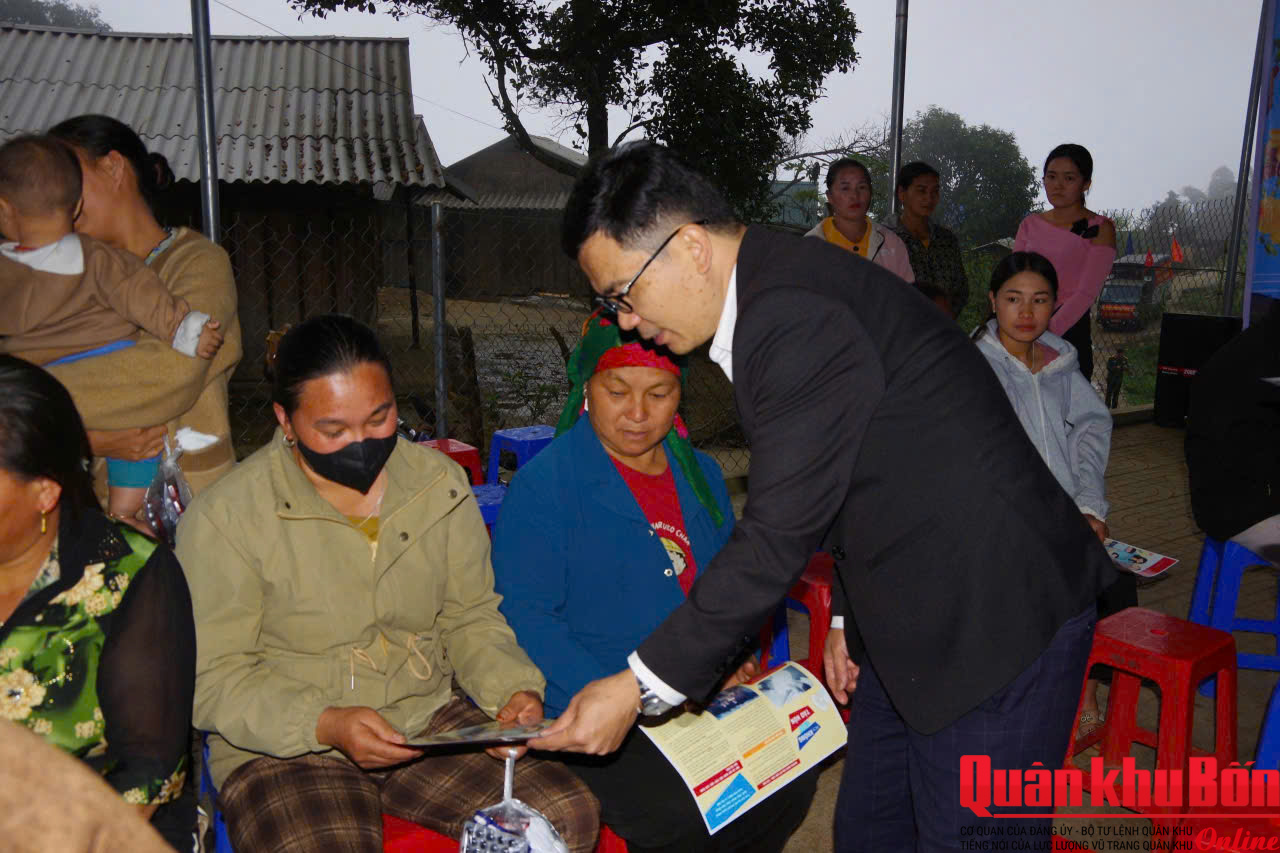 Song song với công tác tuyên truyền, đội ngũ y bác sĩ của đơn vị đã tổ chức thăm khám, tư vấn sức khỏe và cấp phát thuốc miễn phí cho hơn 100 lượt người dân, giúp bà con có thêm kiến thức và điều kiện chăm sóc sức khỏe bản thân trong dịp đầu xuân mới. Nhân dịp này, đơn vị cũng đã trao tặng 79 suất quà nghĩa tình cho các hộ gia đình chính sách và gia đình có hoàn cảnh khó khăn trên địa bàn bản Phù Khả 1, thể hiện sự quan tâm sâu sắc của lực lượng vũ trang đối với đời sống đồng bào vùng sâu, vùng xa.