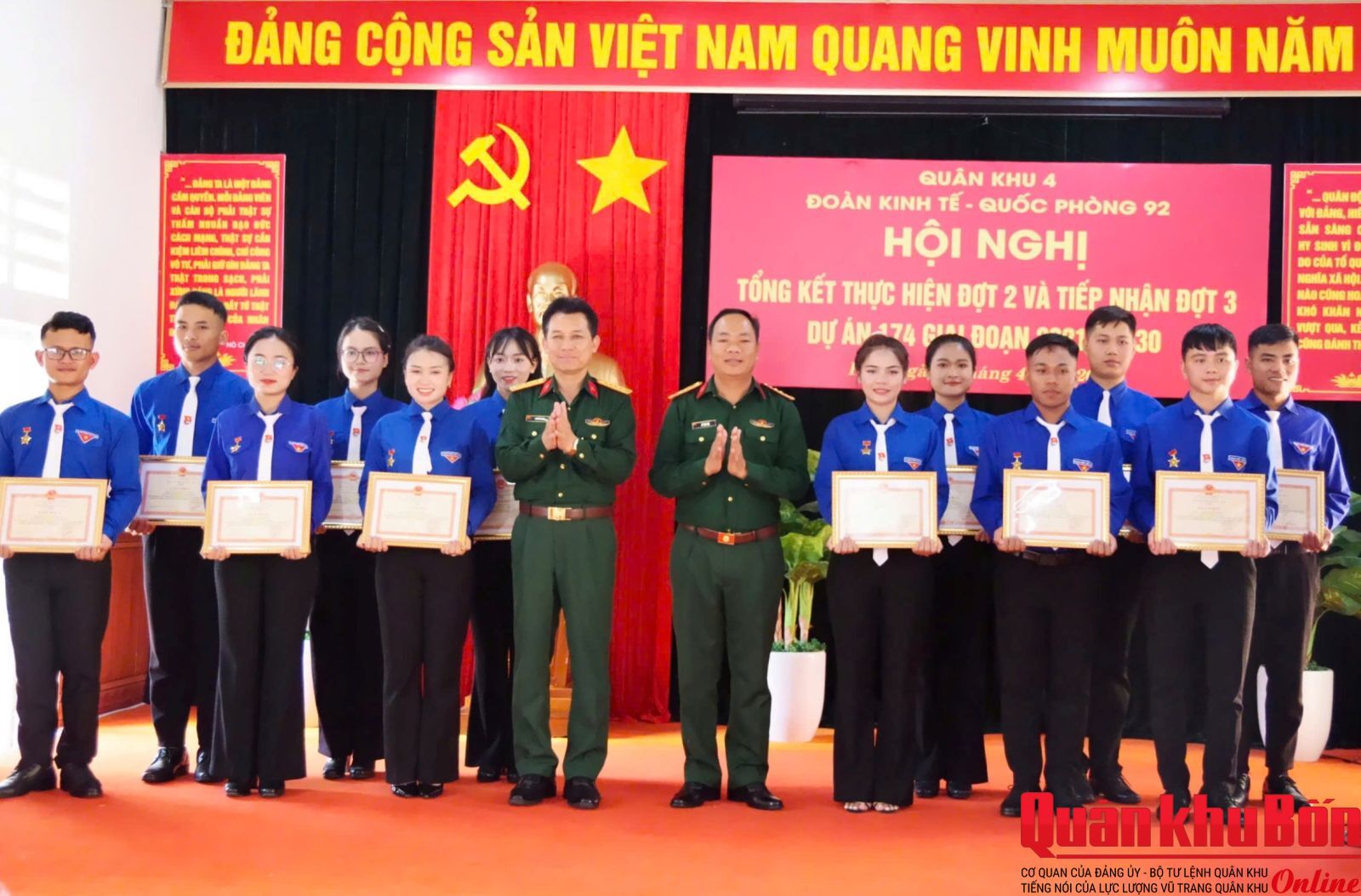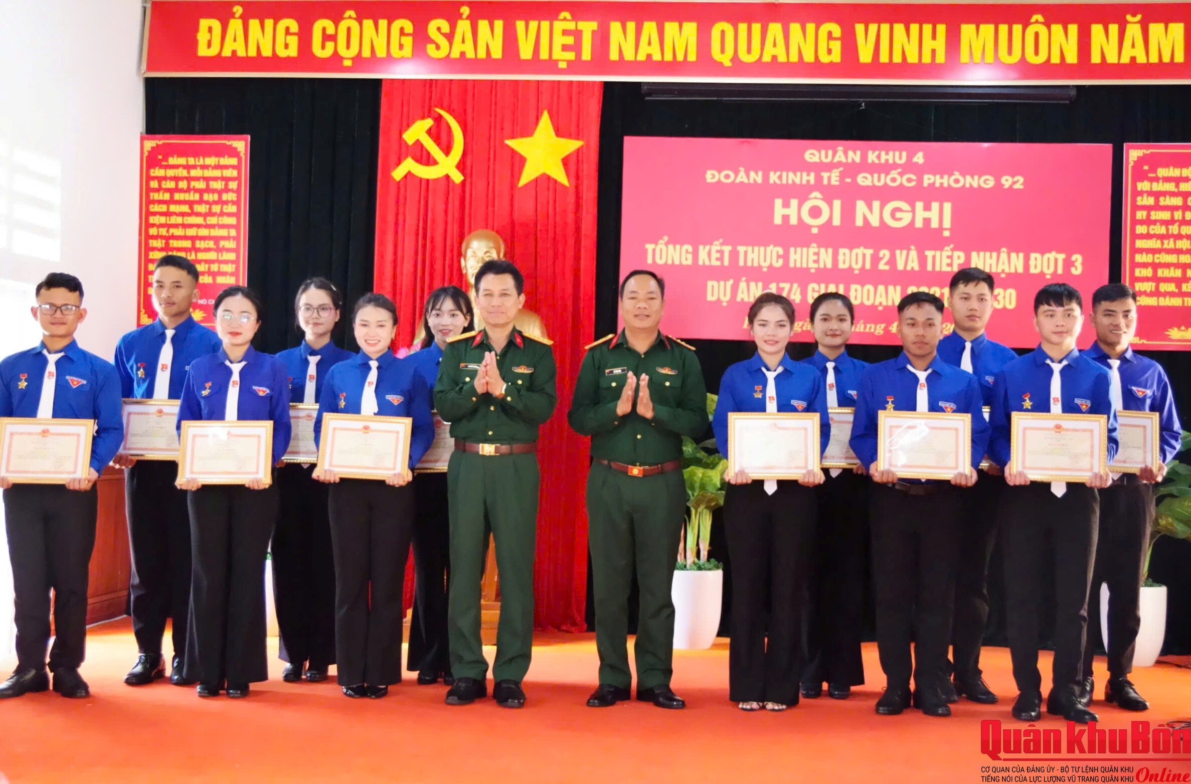 Tại Hội nghị, Đoàn KT-QP 92 đã tặng Giấy khen cho 12 đội viên TTTTN có thành tích xuất sắc trong thực hiện nhiệm vụ tại Khu KT-QP A So, A Lưới giai đoạn 2024-2026. Đồng thời, công bố và trao Quyết định của Ban Quản lý dự án 174 Quân khu 4 phê duyệt danh sách tuyển chọn 12 đội viên trí thức trẻ tình nguyện đợt 3 (2026-2028) về công tác tại Khu Kinh tế - Quốc phòng A So, A Lưới, thành phố Huế và Khu KT-QP Minh Hóa – Tuyên Hóa, tỉnh Quảng Trị.