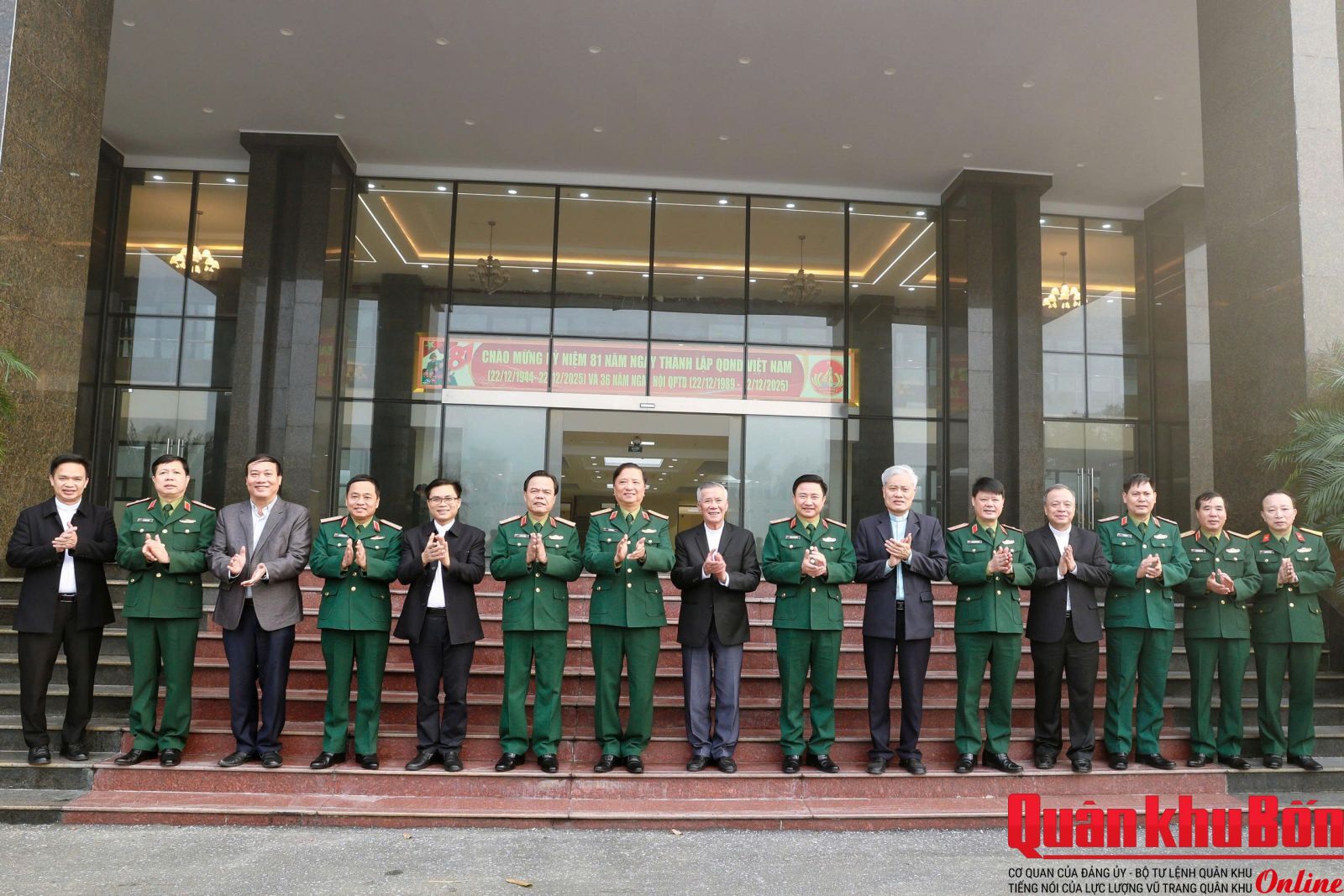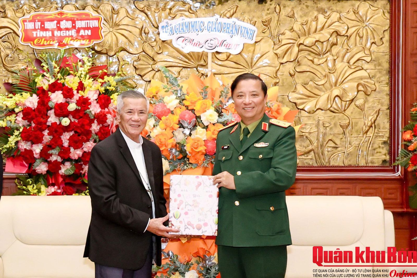 Nhân dịp kỷ niệm 81 năm Ngày thành lập Quân đội Nhân dân Việt Nam (22/12/1944 – 22/12/2025) và 36 năm Ngày hội Quốc phòng toàn dân (22/12/1989 – 22/12/2025), sáng ngày 19/12/2025, đoàn công tác Tòa Giám mục Giáo phận Vinh do An Phong Nguyễn Hữu Long, Giám mục chính Tòa Giáo phận Vinh làm Trưởng đoàn đã đến thăm, chúc mừng Bộ Tư lệnh Quân khu 4.