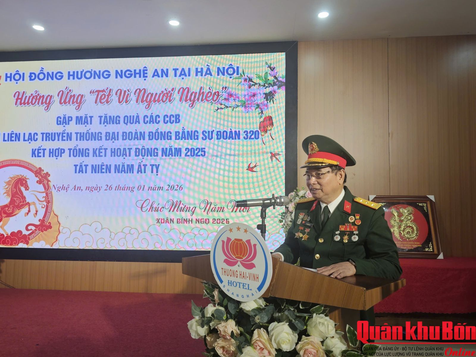 Phát biểu tại buổi gặp mặt, CCB Lê Mạnh Hải, Trưởng Ban Liên lạc Truyền thống Đại đoàn Đồng bằng Nghệ An - Hà Tĩnh bày tỏ lòng tri ân sâu sắc đối với Chủ tịch Hồ Chí Minh, các anh hùng liệt sĩ, các thế hệ cán bộ, chiến sĩ đã hy sinh vì độc lập, tự do của Tổ quốc; đồng thời tưởng nhớ cố Trung tướng, Anh hùng LLVT nhân dân Khuất Duy Tiến - nguyên Trưởng Ban Liên lạc Truyền thống Sư đoàn 320. Chương trình là dịp ôn lại truyền thống 75 năm xây dựng, chiến đấu và trưởng thành của Sư đoàn 320 (16/01/1951 - 16/01/2026), đơn vị anh hùng với phương châm “Đoàn kết - Nghiêm túc - Dũng cảm - Chiến thắng”. Đây cũng là hoạt động ý nghĩa tiếp nối dấu ấn Lễ đón nhận Huân chương Bảo vệ Tổ quốc hạng Nhì do Chủ tịch nước trao tặng cho Sư đoàn.
