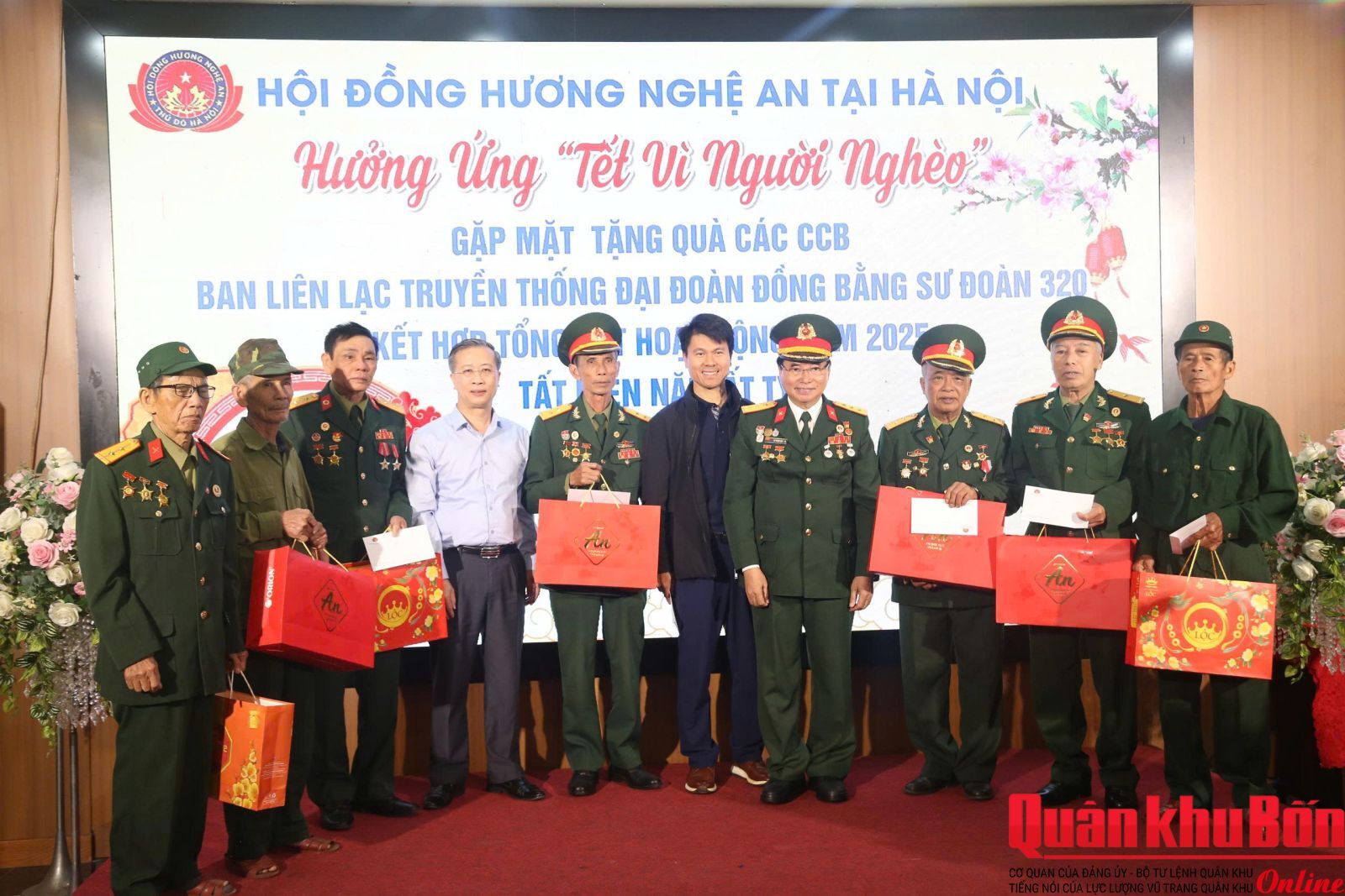 Tại buổi gặp mặt, Hội đồng hương Nghệ An tại Hà Nội đã trao tặng nhiều phần quà thiết thực cho các CCB Sư đoàn 320 có hoàn cảnh khó khăn, thể hiện đạo lý “Uống nước nhớ nguồn”, “Tương thân tương ái”, góp phần động viên các đồng chí tiếp tục phát huy phẩm chất “Bộ đội Cụ Hồ”, sống vui, sống khỏe, tích cực tham gia các phong trào tại địa phương.