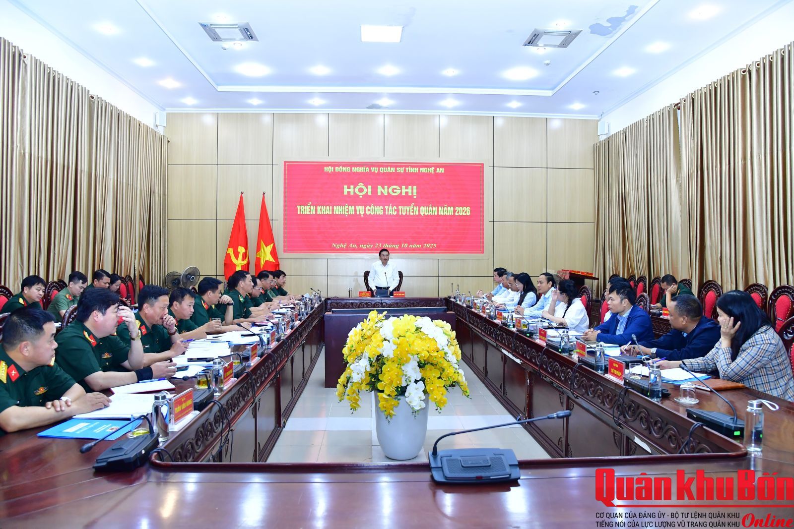 Chiều 23/10/2025, Hội đồng Nghĩa vụ quân sự tỉnh Nghệ An tổ chức Hội nghị triển khai nhiệm vụ công tác tuyển quân năm 2026. Đồng chí Lê Hồng Vinh, Chủ tịch Ủy ban Nhân dân (UBND) tỉnh, Chủ tịch Hội đồng Nghĩa vụ quân sự tỉnh chủ trì.