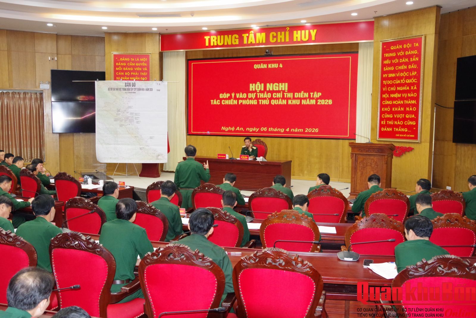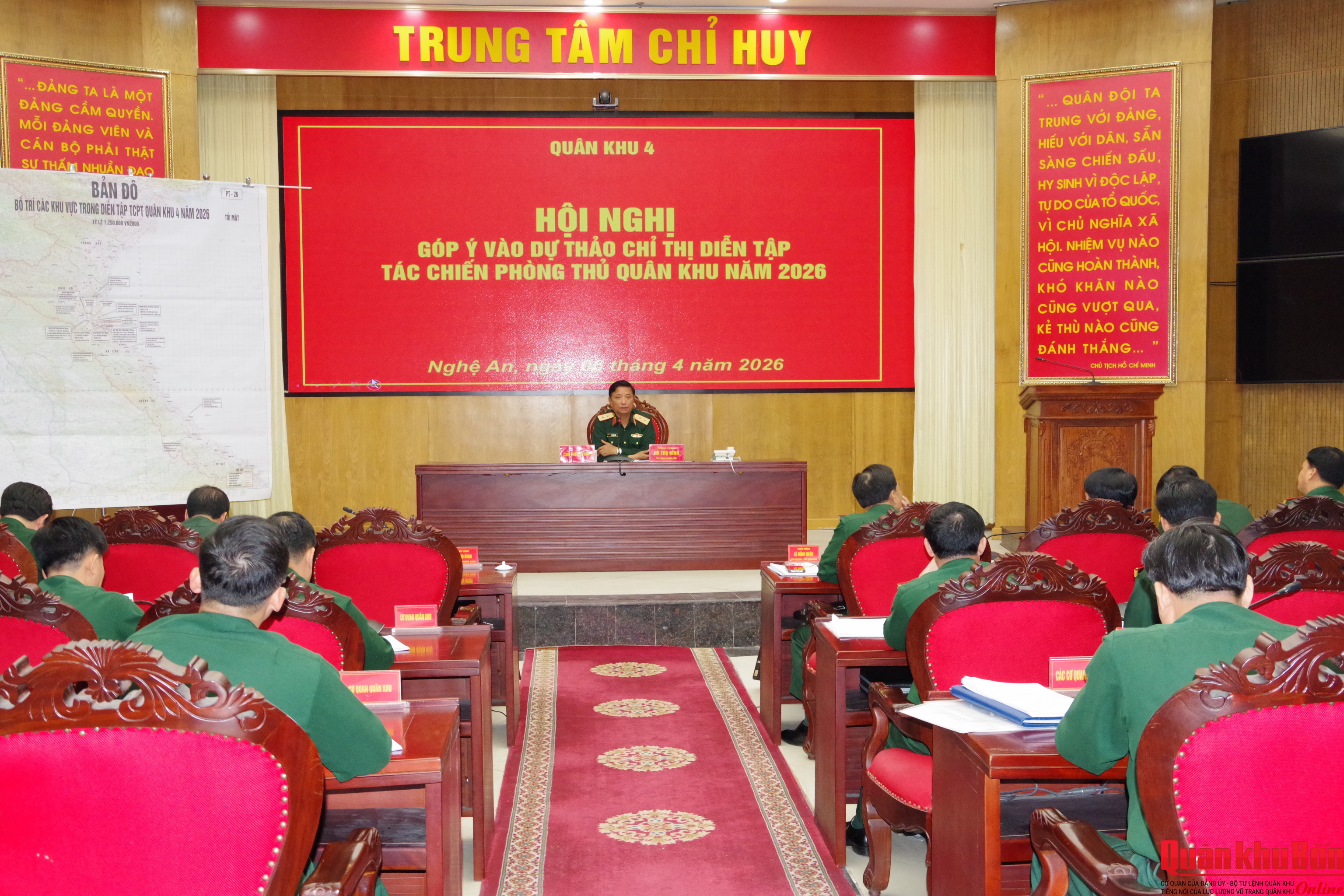 Ngày 06/4/2026, Trung tướng Hà Thọ Bình, Tư lệnh Quân khu 4 chủ trì Hội nghị góp ý vào dự thảo Chỉ thị Diễn tập tác chiến phòng thủ Quân khu năm 2026. Thiếu tướng Lê Hồng Nhân, Phó Tư lệnh, Tham mưu trưởng Quân khu; Thiếu tướng Hoàng Duy Chiến, Phó Tư lệnh Quân khu; Thiếu tướng Phạm Văn Đông, Chủ nhiệm Chính trị Quân khu, cùng thủ trưởng các cơ quan Quân khu dự hội nghị.