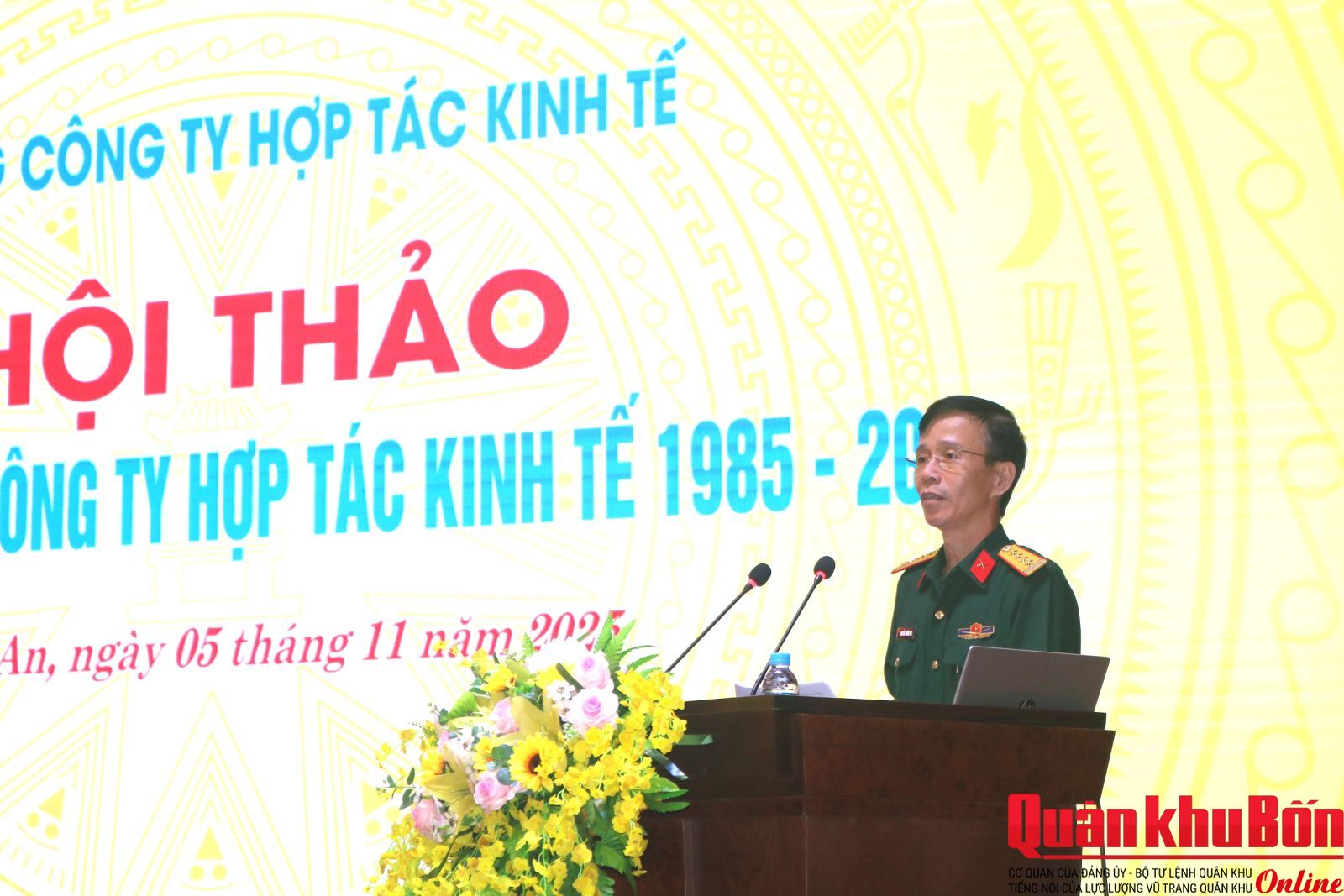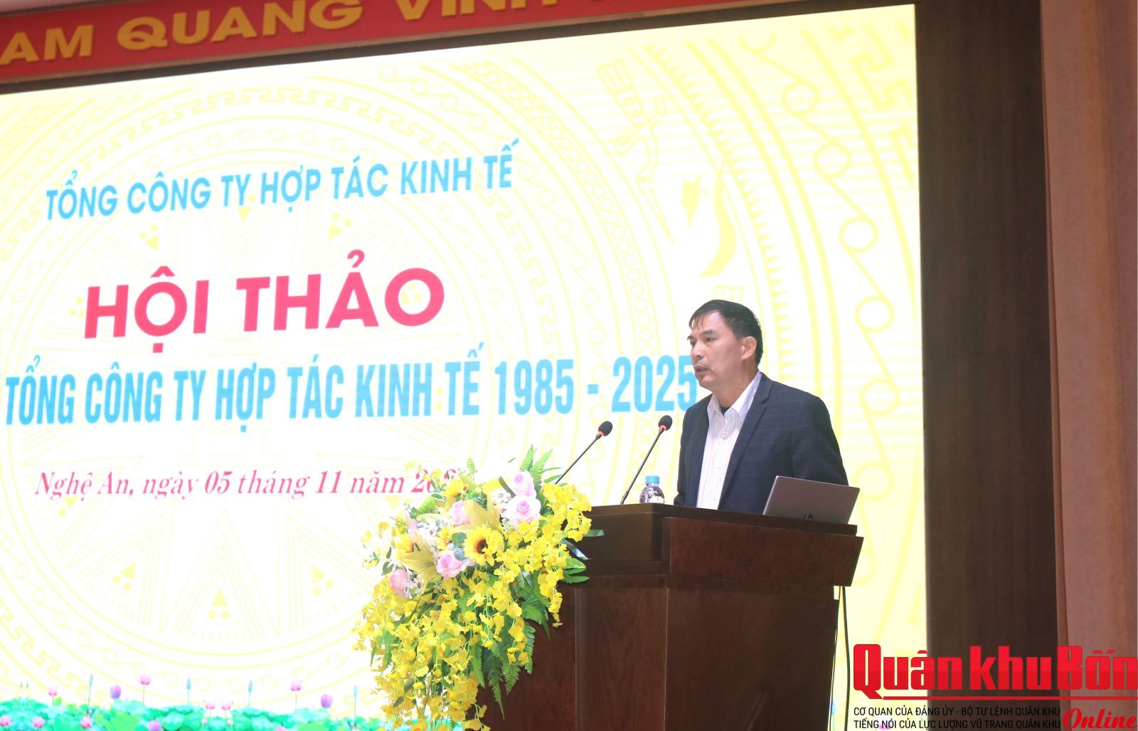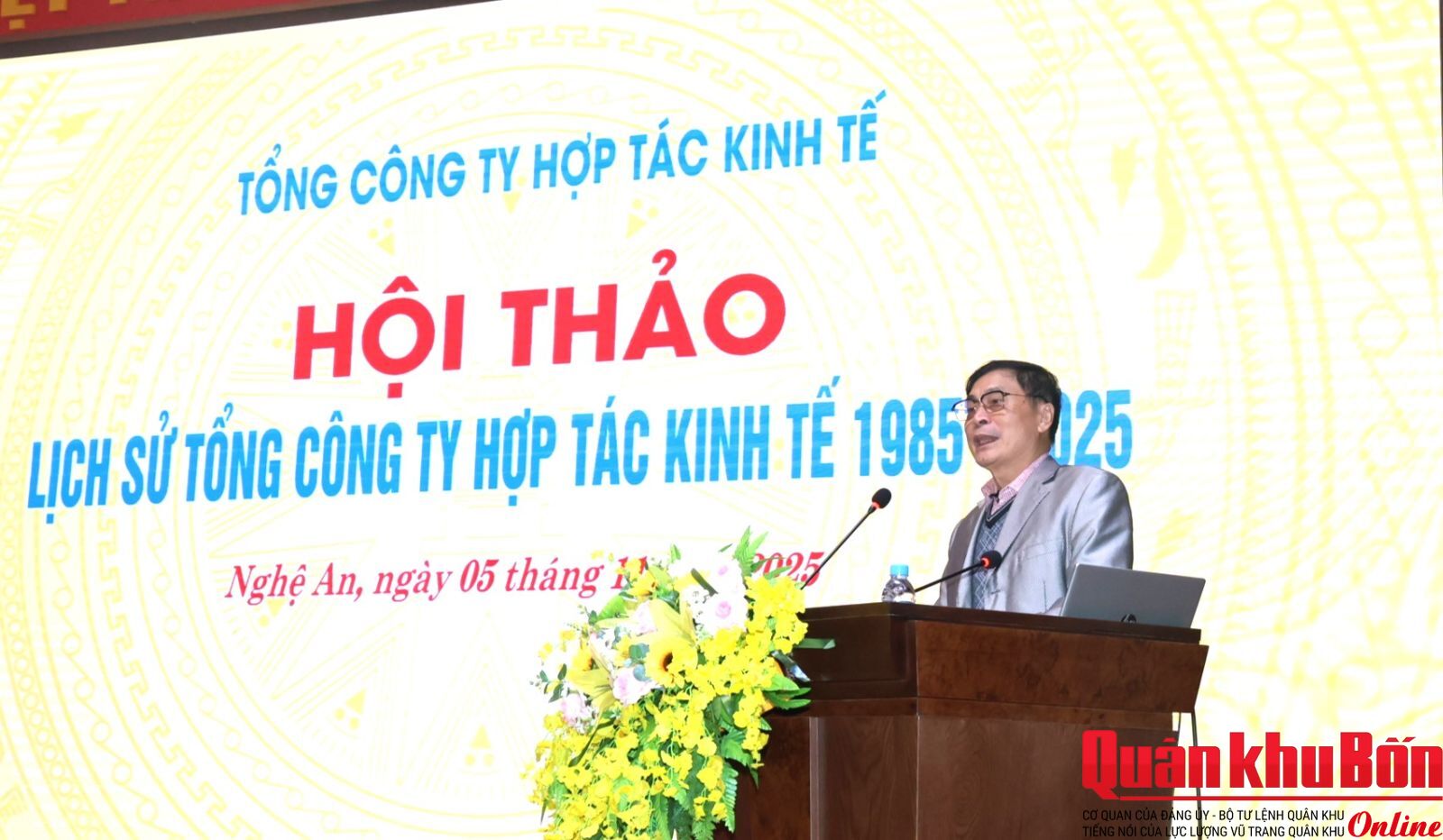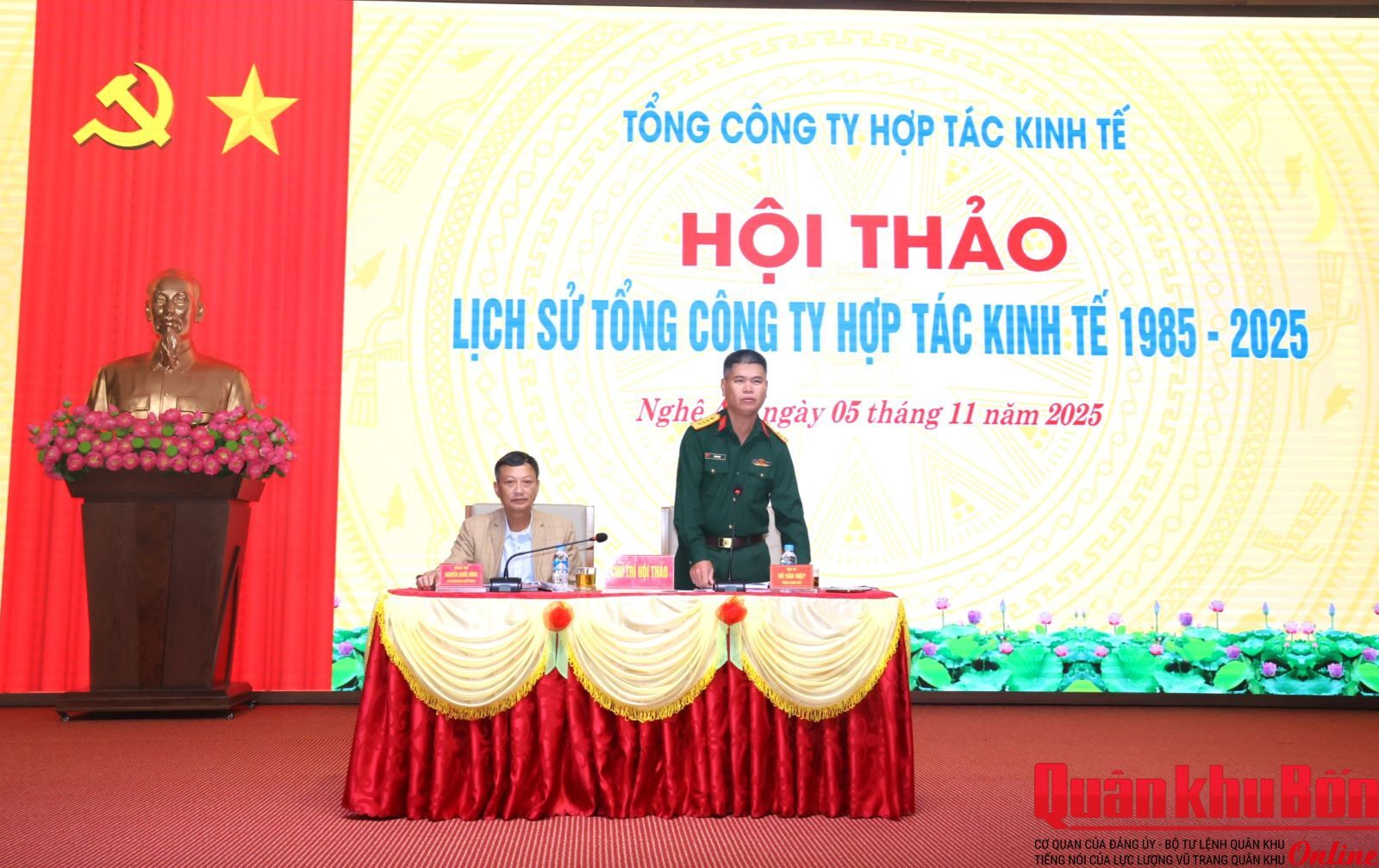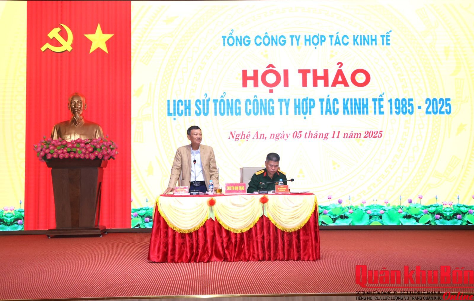 Chiều ngày 5/11/2025, Tổng công ty Hợp tác kinh tế Quân khu 4 đã tổ chức Hội thảo lịch sử Tổng công ty 1985 – 2025. Thiếu tướng Phan Văn Sỹ, Phó Chủ nhiệm Chính trị Quân khu; Đại tá Phạm Hùng Thắng, Bí thư Đảng ủy, Chủ tịch Tổng công ty dự Hội nghị. Đại tá Võ Văn Việt, Tổng Giám đốc Tổng công ty và Ông Nguyễn Quốc Hồng - Chủ tịch Hội Khoa học Lịch sử Nghệ An đồng chủ trì Hội thảo. Dự hội thảo còn có các đồng chí lãnh đạo Tổng công ty qua các thời kỳ, các đồng chí có thời gian công tác thời kỳ đầu của Tổng công ty; lãnh đạo Tổng công ty, các phòng, ban cơ quan Tổng công ty, các thành viên Ban biên soạn cuốn lịch sử.