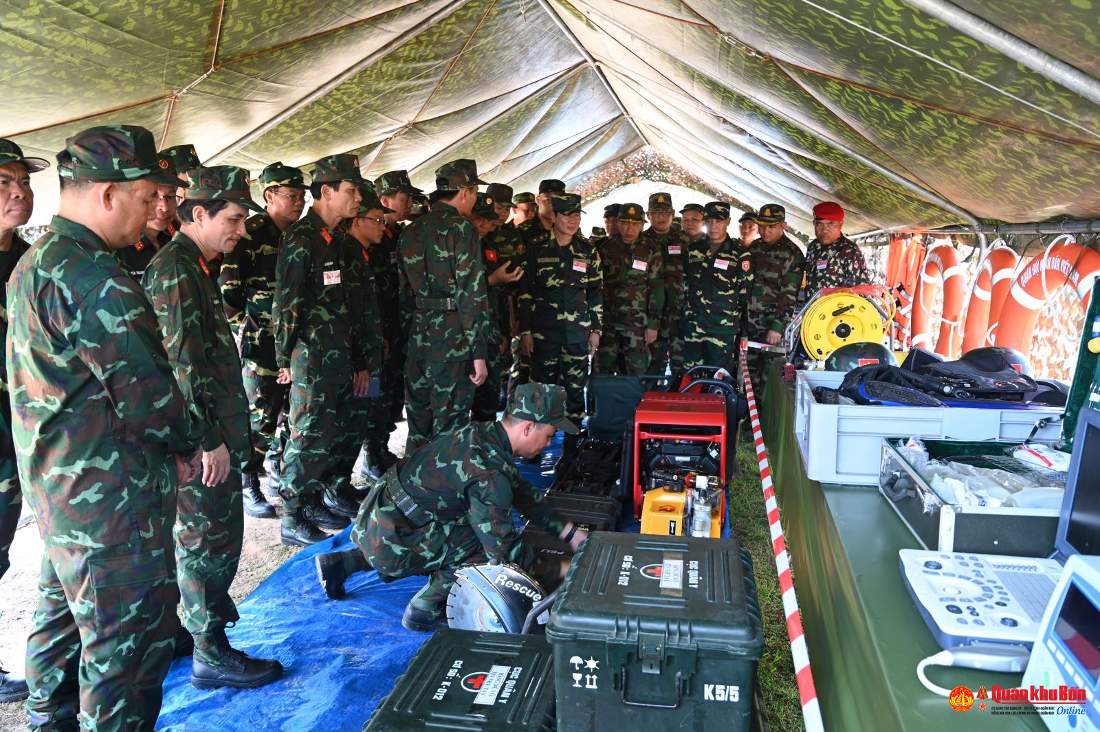 Nội dung huấn luyện, luyện tập phục vụ cho Diễn tập cứu hộ, cứu nạn chung giữa Quân đội 3 nước Lào – Việt Nam – Campuchia được tổ chức tại sông Nam Houm, quận Naxaiphong, thủ đô Viêng Chăn, Nước Cộng hòa DCND Lào từ ngày 06 -14/10 với các nội dung: luyện tập và thực hành các tình huống tìm kiếm, cứu hộ nạn nhân trên sông bị nước lũ cuốn trôi và tìm kiếm cứu hộ, cứu nạn sập đổ công trình. Thời gian tổ chức diễn tập chính thức vào ngày 15/10/2025.