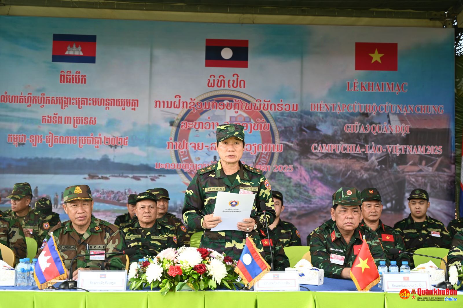 Ngày 06/10/2025, tại quận Naxaiphong, thủ đô Viêng Chăn, Nước Cộng hòa dân chủ nhân dân (DCND) Lào, Bộ Quốc phòng Lào chủ trì tổ chức Khai mạc huấn luyện, luyện tập để chuẩn bị cho diễn tập cứu hộ, cứu nạn chung giữa Quân đội 3 nước Lào – Việt Nam – Campuchia. Trung tướng Saichay Commasith, Thứ trưởng Bộ Quốc phòng, Tổng Tham mưu trưởng Quân đội nhân dân Cách mạng Lào chủ trì buổi lễ. Dự lễ khai mạc về phía Quân đội Nhân dân (QĐND) Việt Nam có Đại tá Phạm Văn Dũng, Phó Tham mưu trưởng Quân khu 4; Đại diện Quân đội Hoàng gia Campuchia có Đại tá Long Kim Thean, Phó Cục trưởng Cục Quân huấn, Bộ tổng Tham mưu Quân đội Hoàng gia Campuchia.