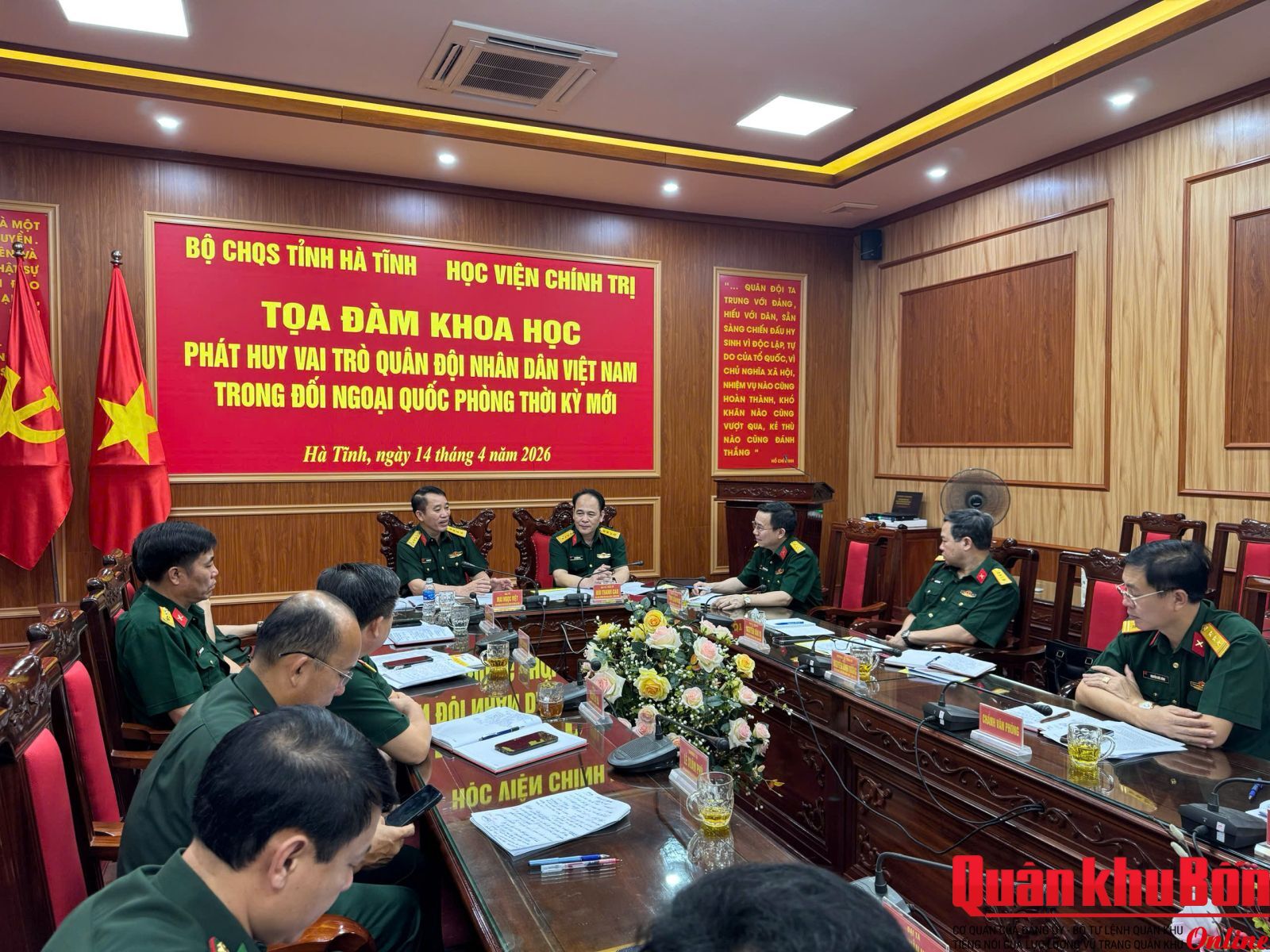 Tại buổi tọa đàm, các đại biểu đã tập trung trao đổi, phân tích nhiều vấn đề quan trọng liên quan đến vị trí, vai trò của Quân đội nhân dân Việt Nam trong thực hiện đường lối đối ngoại của Đảng, chính sách đối ngoại của Nhà nước, nhất là trong lĩnh vực đối ngoại quốc phòng. Từ thực tiễn hoạt động quân sự, quốc phòng địa phương, các ý kiến đã góp phần làm rõ những kết quả nổi bật, những vấn đề đặt ra, đồng thời đề xuất nhiều giải pháp nhằm tiếp tục nâng cao chất lượng, hiệu quả công tác đối ngoại quốc phòng trong bối cảnh mới.