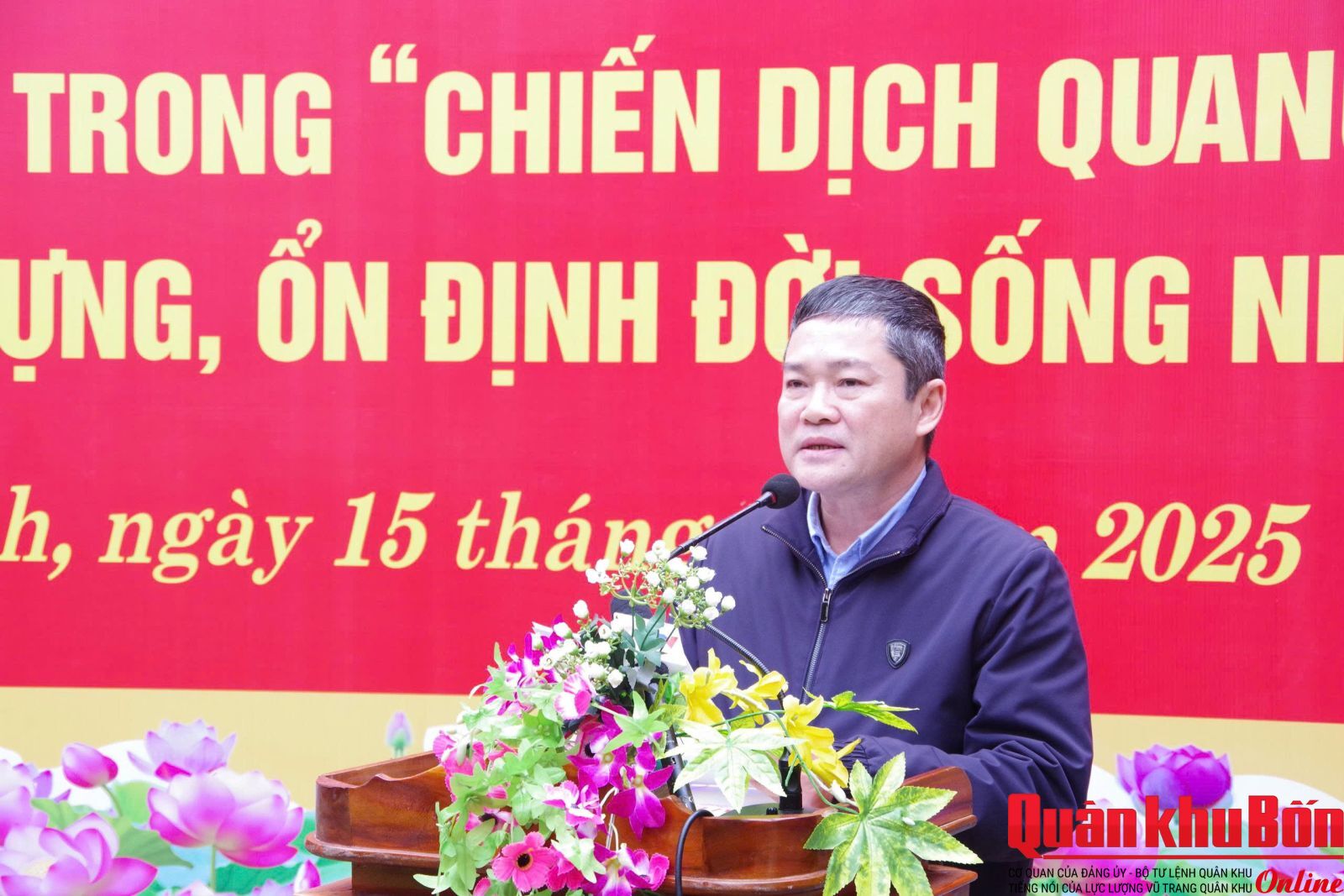 Trực tiếp kiểm tra, chỉ huy công trình, Thiếu tướng Hoàng Duy Chiến, Phó Tư lệnh Quân khu 4 khẳng định quyết tâm của lực lượng vũ trang trong tham gia khắc phục hậu quả thiên tai, bảo đảm an toàn cho Nhân dân. Đồng chí Phó Tư lệnh Quân khu cho biết, Quân khu 4 đã huy động cán bộ, chiến sĩ Sư đoàn 968, lực lượng vũ trang, lực lượng dân quân tự vệ Bộ CHQS tỉnh Quảng Trị, với quân số hơn 400 cán bộ, chiến sĩ cùng trên 30 loại phương tiện chuyên dụng; tổ chức thi công theo phương châm chia ca, chia kíp, làm ngày, làm đêm, phấn đấu hoàn thành công trình trước ngày 31/12.