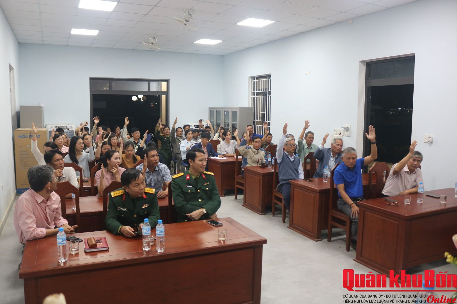 Kết thúc hội nghị, cử tri Tổ dân phố Lang Xá Cồn đã tiến hành biểu quyết với kết quả 100% cử tri nhất trí tín nhiệm giới thiệu Thiếu tướng Ngô Nam Cường ứng cử ĐBQH khóa XVI.