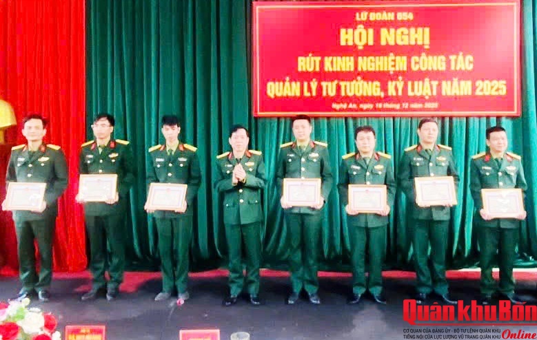 Ngày 18/12/2025, Lữ đoàn 654, Cục Hậu cần - Kỹ thuật Quân khu 4 tổ chức Hội nghị rút kinh nghiệm công tác quản lý tư tưởng, kỷ luật năm 2025. Đại tá Nguyễn Tiến Sỹ, Bí thư Đảng ủy, Chính ủy Lữ đoàn chủ trì Hội nghị; Dự và chỉ đạo Hội nghị có đồng chí Đại tá Hà Huy Hoàng, Chủ nhiệm Chính trị Cục Hậu cần - Kỹ thuật Quân khu 4; các đồng chí trong Thường vụ Đảng ủy, Chỉ huy Lữ đoàn; đại biểu Phòng Chính trị, Phòng Tham mưu, Cục Hậu cần - Kỹ thuật; cùng đại biểu các cơ quan, đơn vị trực thuộc Lữ đoàn.