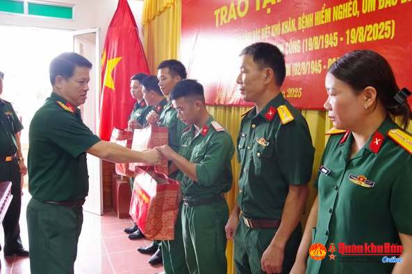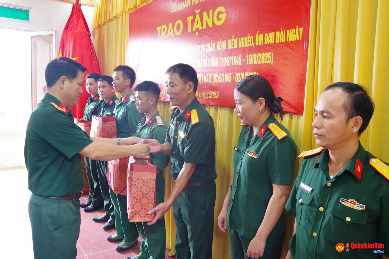 Thừa ủy quyền, thủ trưởng Lữ đoàn đã trao 7 suất quà của Quân ủy Trung ương, Bộ Quốc phòng (mỗi suất trị giá 1,8 triệu đồng, trong đó, 1,5 triệu đồng tiền mặt và quà hiện vật 300.000 đồng, tổng trị giá 12,6 triệu đồng).