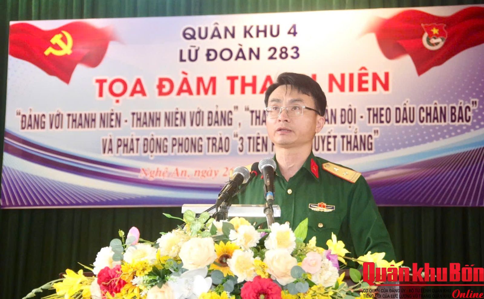 Phát biểu chỉ đạo tại tọa đàm, Đại tá Võ Xuân Sơn, Chính ủy Lữ đoàn Phòng không 283 nhấn mạnh: Thanh niên là lực lượng xung kích, đội hậu bị tin cậy của Đảng. Vì vậy, mỗi cán bộ, đoàn viên cần tuyệt đối trung thành với Đảng, không ngừng rèn luyện bản lĩnh chính trị, phẩm chất đạo đức, nâng cao trình độ chuyên môn, sẵn sàng nhận và hoàn thành tốt mọi nhiệm vụ được giao. Đồng chí Chính ủy Lữ đoàn yêu cầu cấp ủy, chỉ huy các cấp tiếp tục quan tâm, tạo điều kiện để thanh niên rèn luyện, cống hiến và trưởng thành.