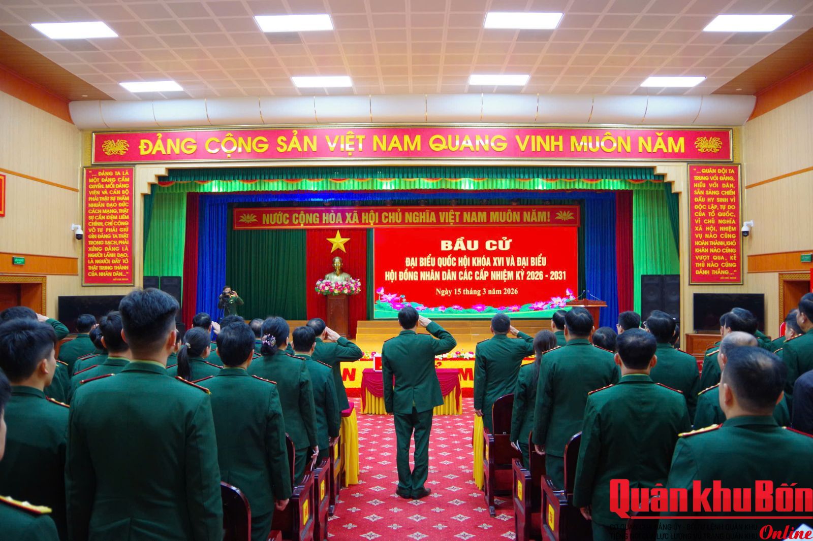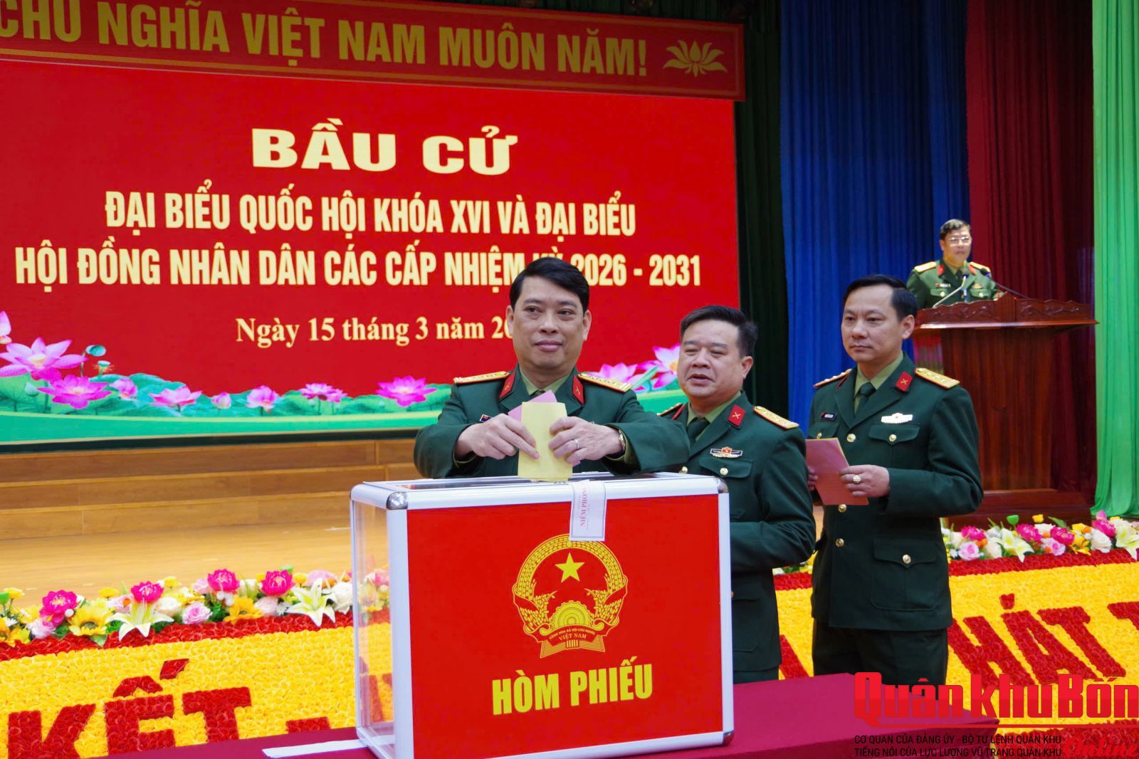 Ngay từ sáng sớm, tại các khu vực bỏ phiếu trong cơ quan Bộ CHQS tỉnh và các đơn vị trực thuộc, công tác chuẩn bị đã được triển khai chu đáo, trang nghiêm, đúng quy trình. Cờ Tổ quốc, pa nô, khẩu hiệu được trang trí rực rỡ; danh sách cử tri, tiểu sử tóm tắt của các ứng cử viên được niêm yết đầy đủ, tạo điều kiện thuận lợi để cử tri nghiên cứu, lựa chọn. Sau khi thực hiện nghi thức khai mạc, cán bộ, chiến sĩ và cử tri trong khu vực đã lần lượt thực hiện quyền và nghĩa vụ công dân, trực tiếp bỏ phiếu bầu những đại biểu tiêu biểu vào Quốc hội và HĐND các cấp.